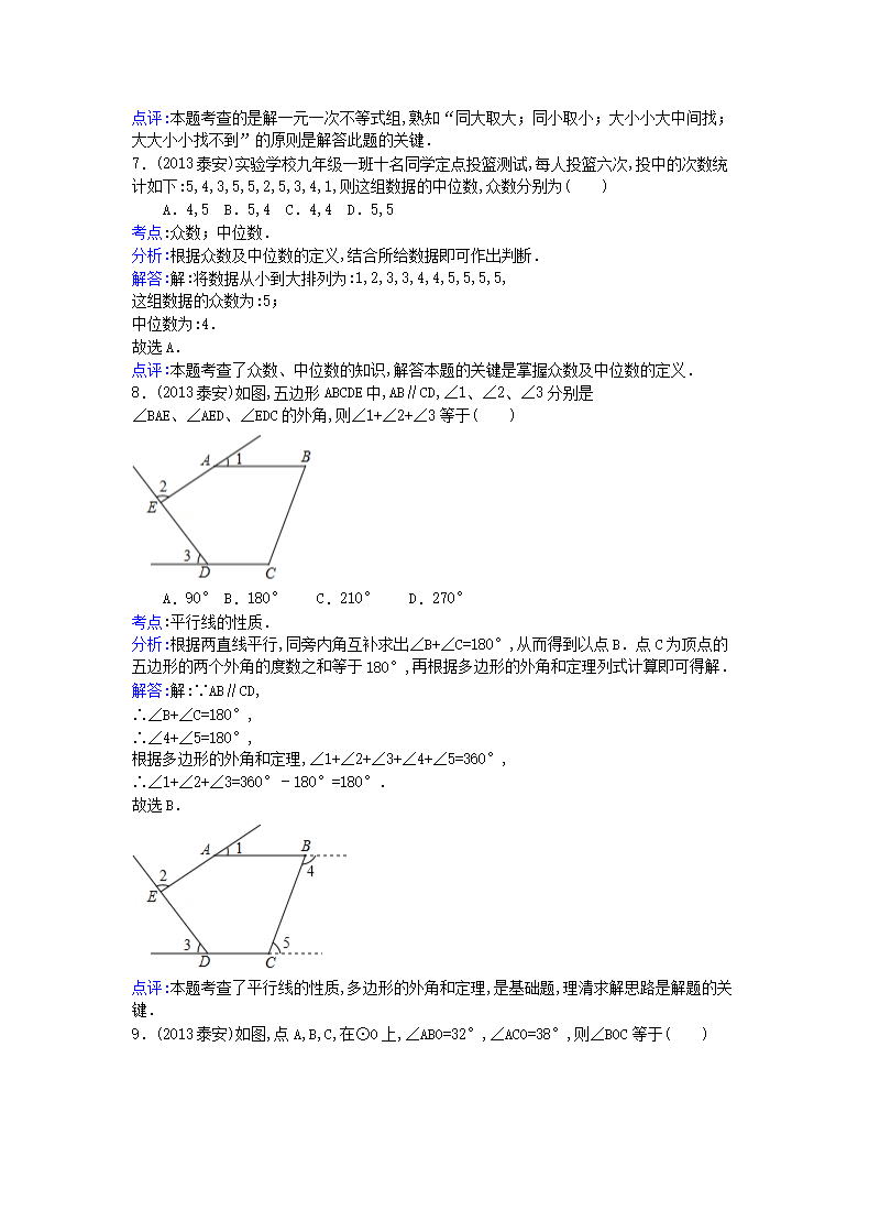 【文档预览】 无忧考网整理发布2013山东省泰安市中考数学真题及答案(Word版),前五页预览如下: