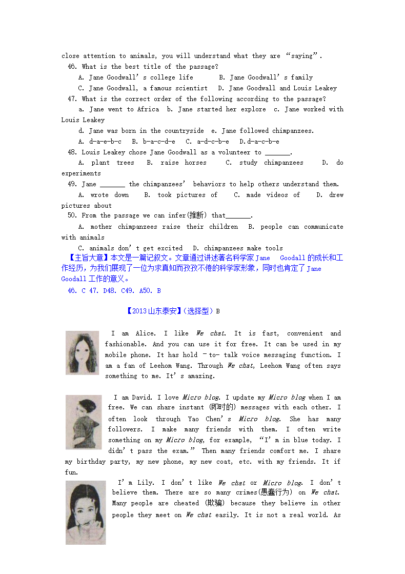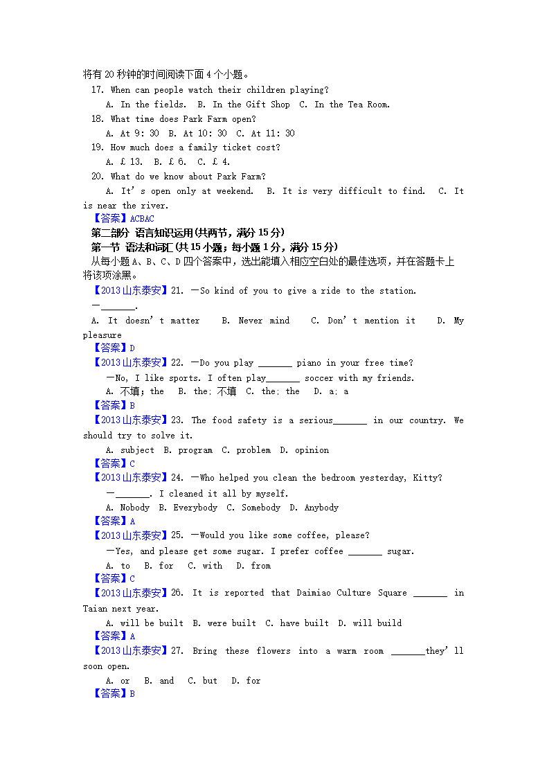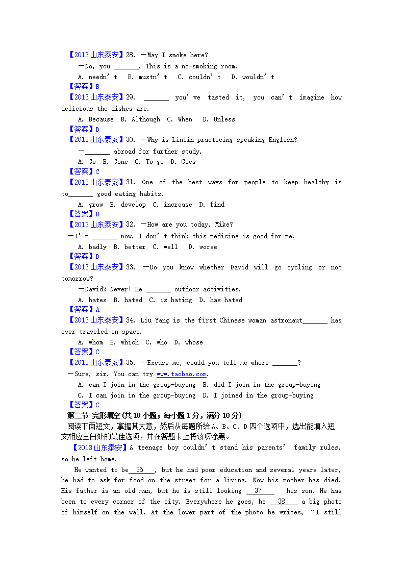 【文档名称】 2013山东省泰安市中考英语真题及答案(Word版).doc