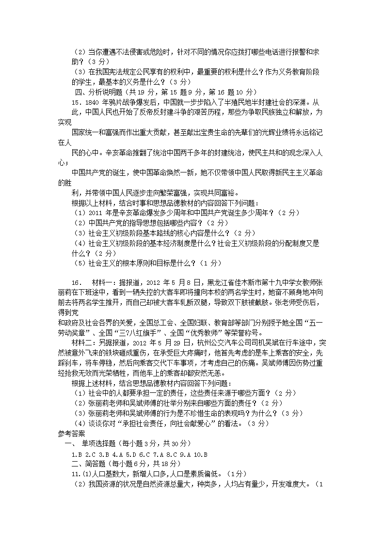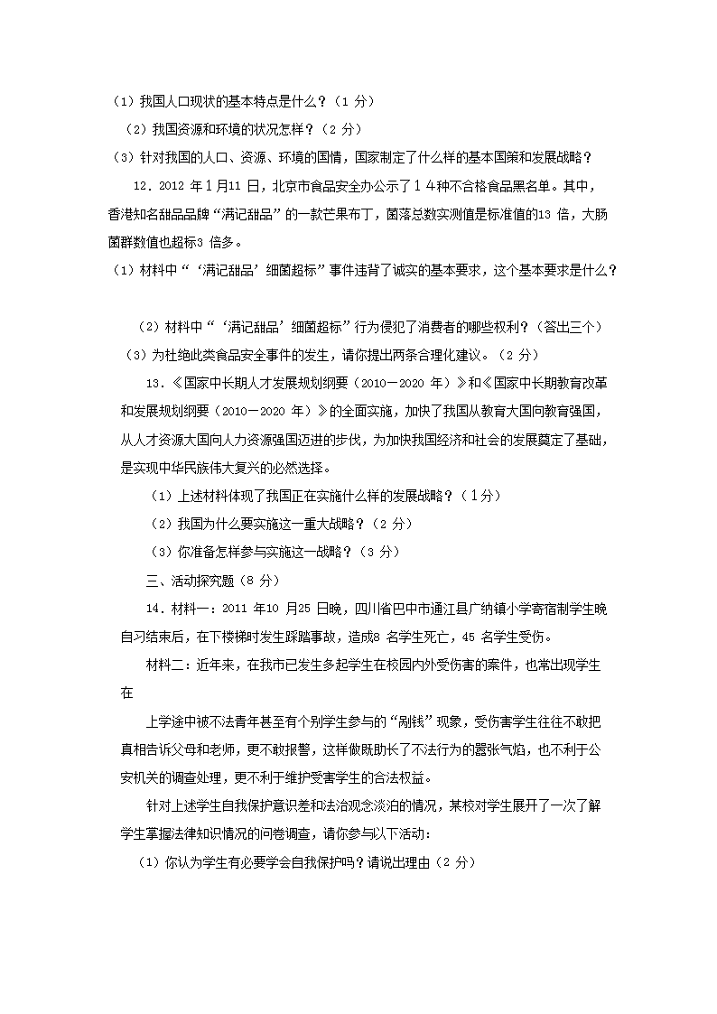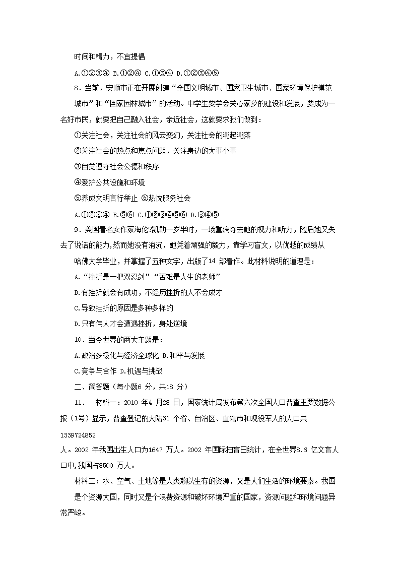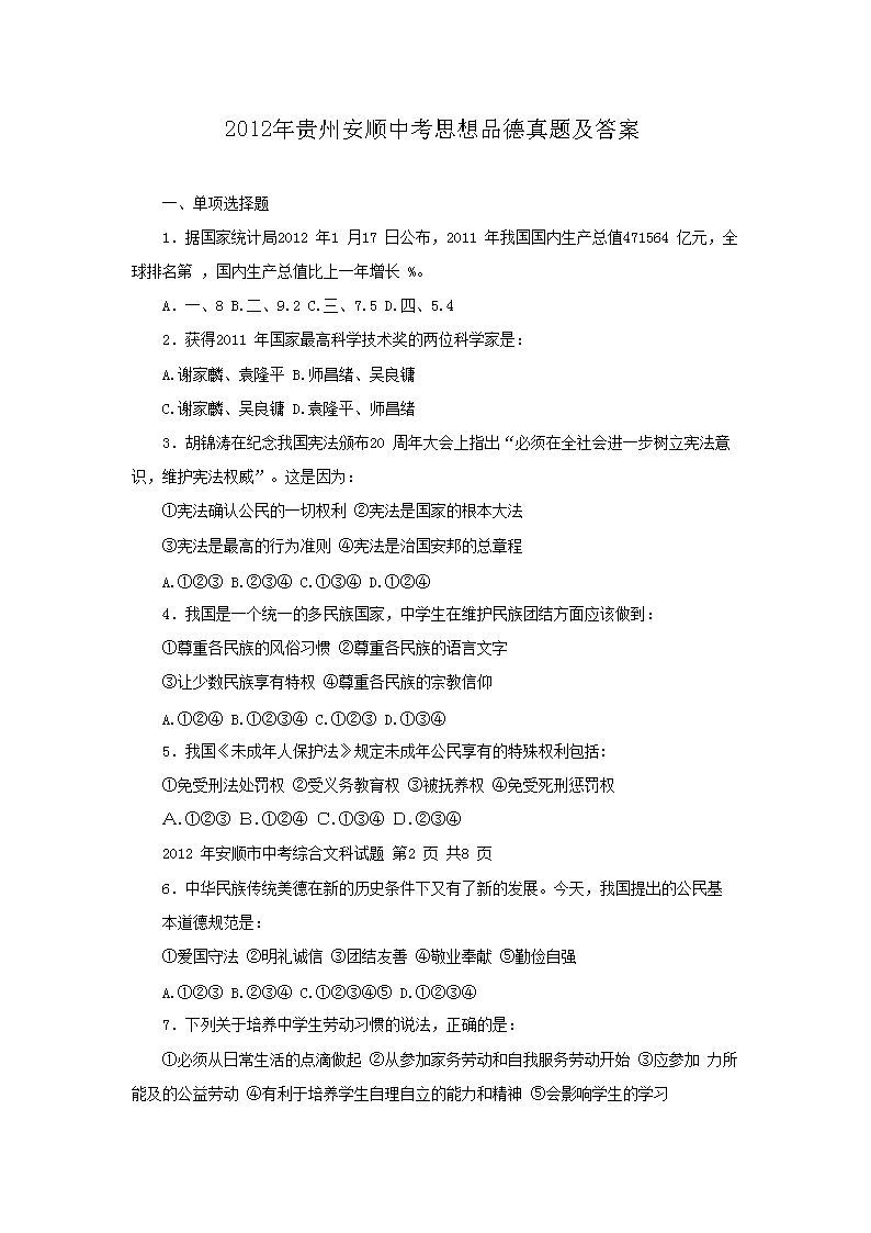 【文档名称】 2012年贵州安顺中考思想品德真题及答案(Word版).doc