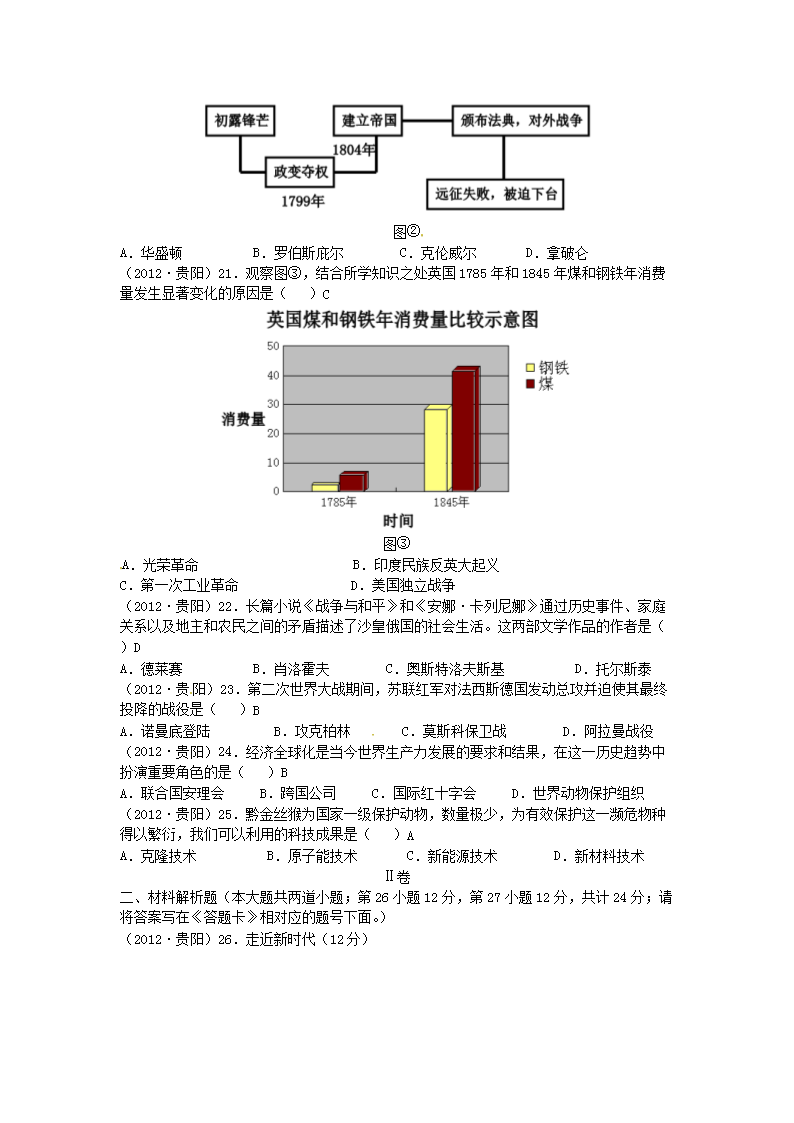 【文档名称】 2012年贵州贵阳市中考历史真题及答案(Word版).doc