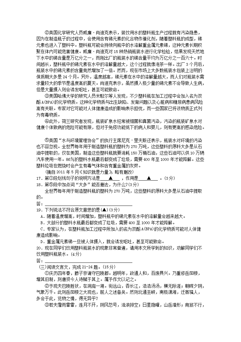 【文档预览】 无忧考网整理发布2012年贵州六盘水市中考语文真题及答案(Word版),前五页预览如下: