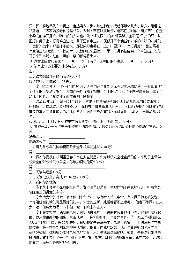 【文档名称】 2012年贵州六盘水市中考语文真题及答案(Word版).doc