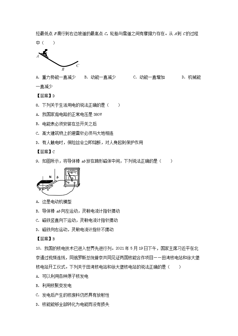 【文档名称】 2021年湖南益阳中考物理试题及答案(Word版).doc
