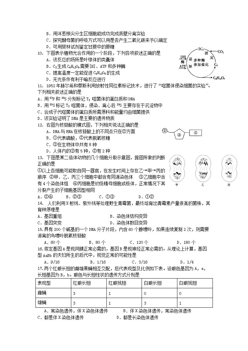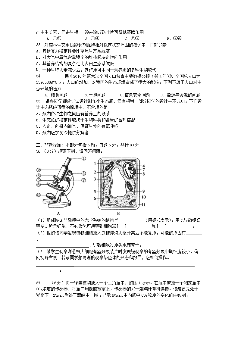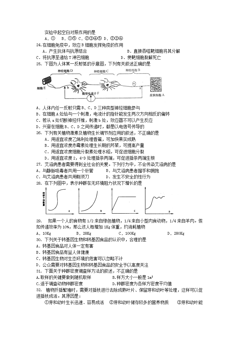 【文档名称】 2012年江苏镇江普通高中会考生物真题及答案(Word版).doc