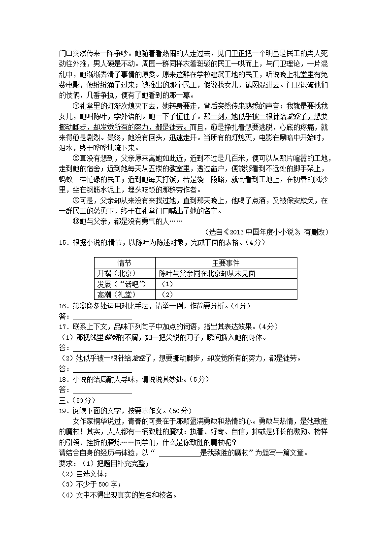 【文档名称】 2014年广东省肇庆市中考语文真题及答案(Word版).doc