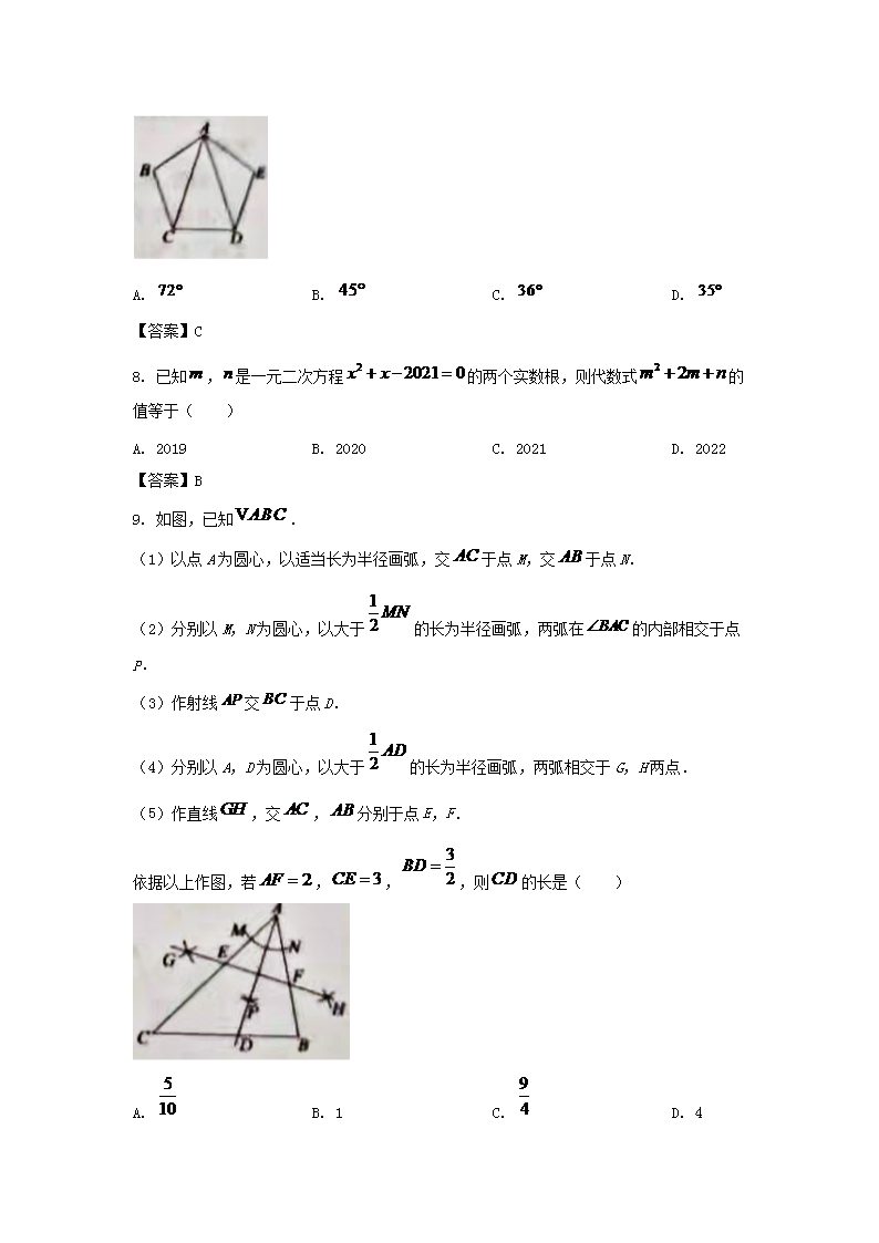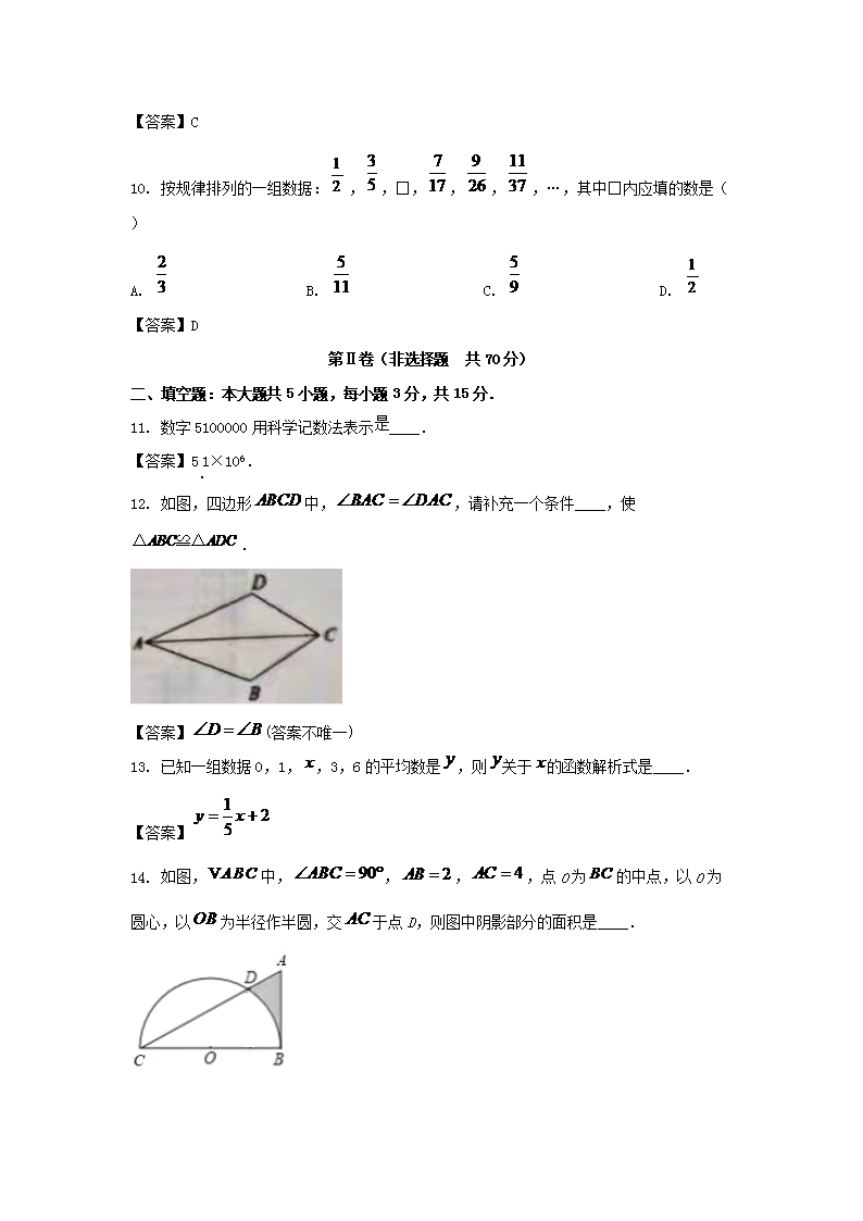 【文档名称】 2021年山东省济宁市中考数学真题及答案(Word版).doc