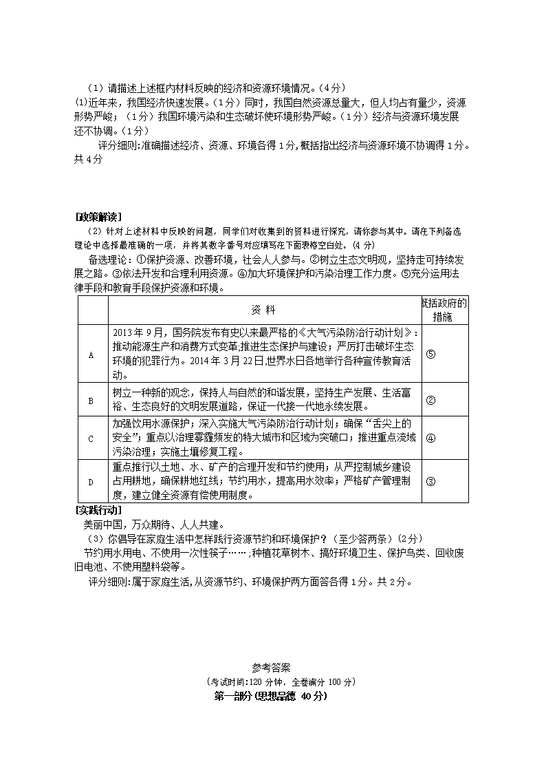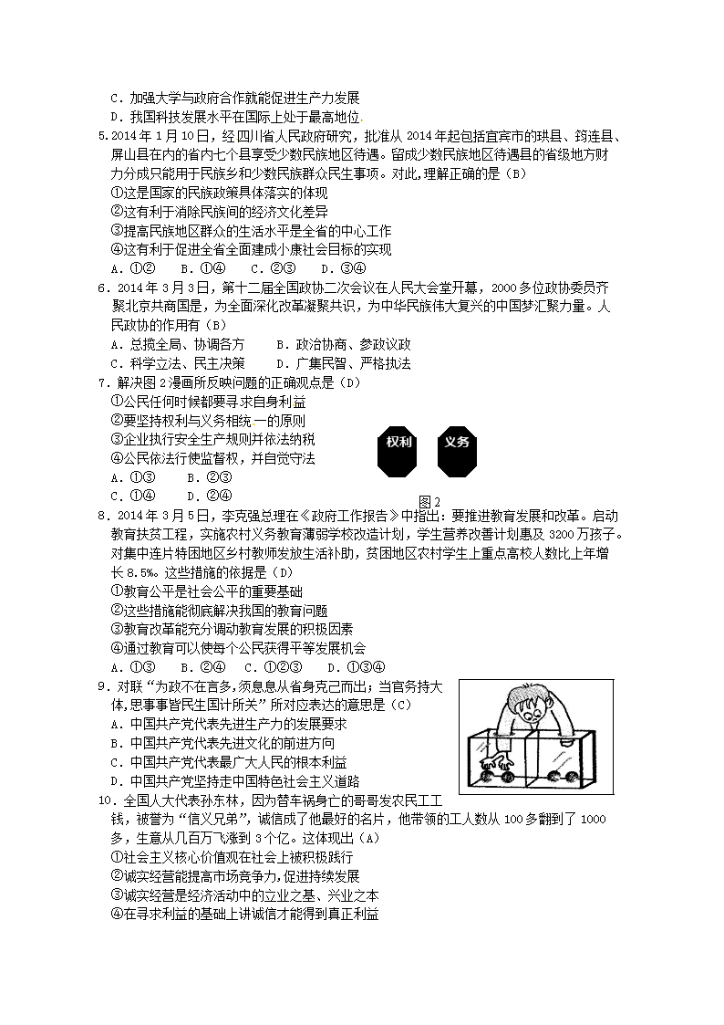 【文档名称】 2014年四川省宜宾市中考政治真题及答案(Word版).doc
