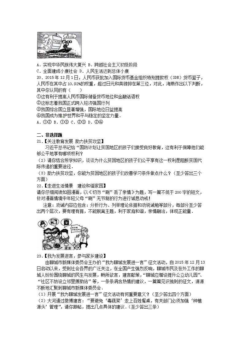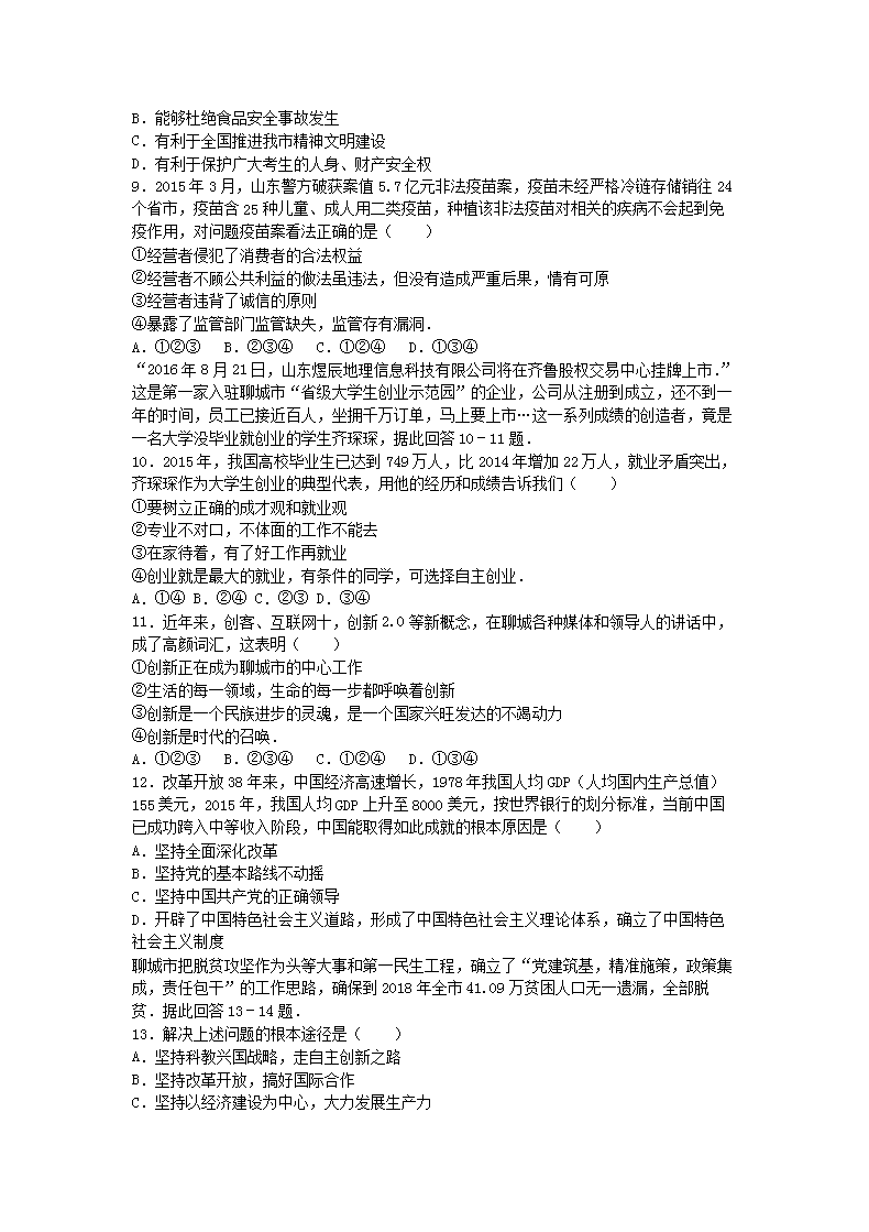 【文档名称】 2016山东省聊城市中考政治真题及答案(Word版).doc