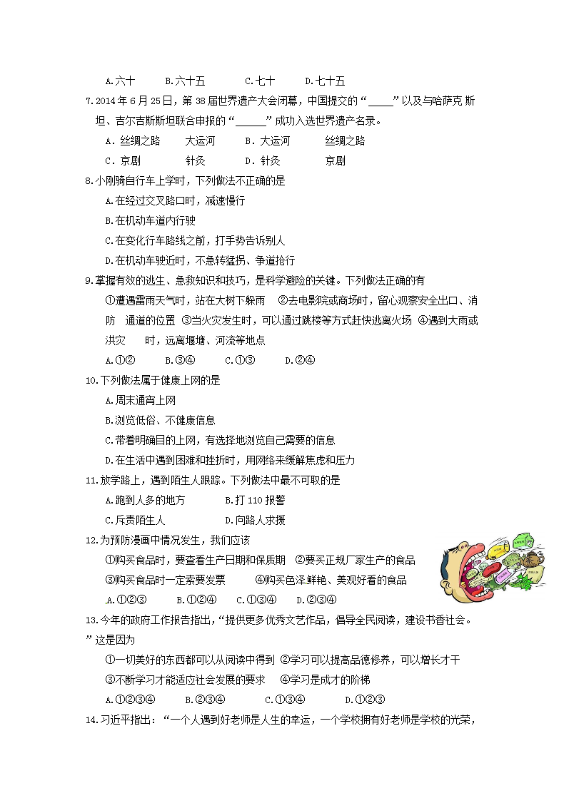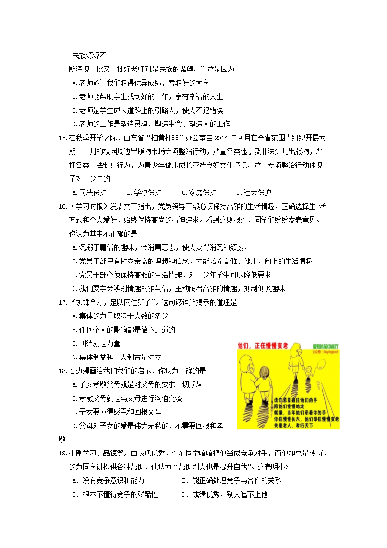 【文档名称】 2015山东省滨州市中考思想品德真题及答案(Word版).doc