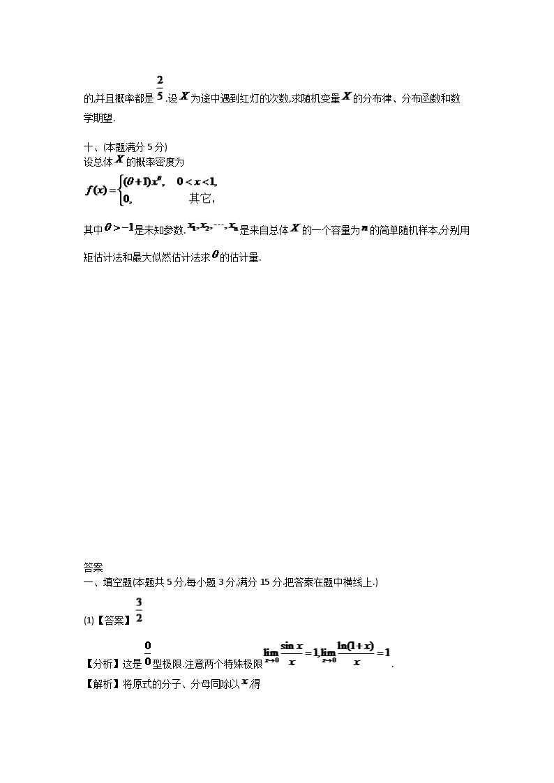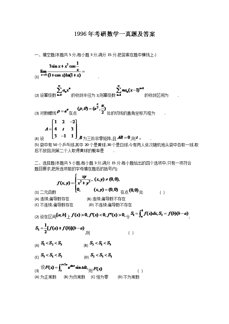 【文档名称】 1996年考研数学一真题及答案(Word版).doc