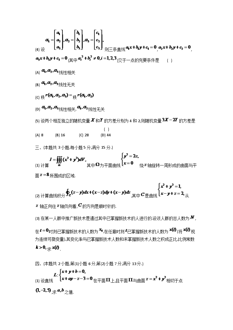 【文档预览】 无忧考网整理发布1996年考研数学一真题及答案(Word版),前五页预览如下: