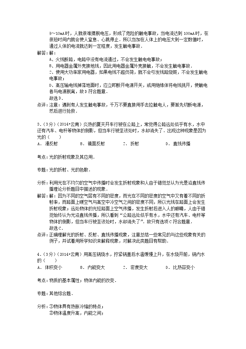 【文档预览】 无忧考网整理发布2014年云南普洱中考物理真题及答案(Word版),前五页预览如下: