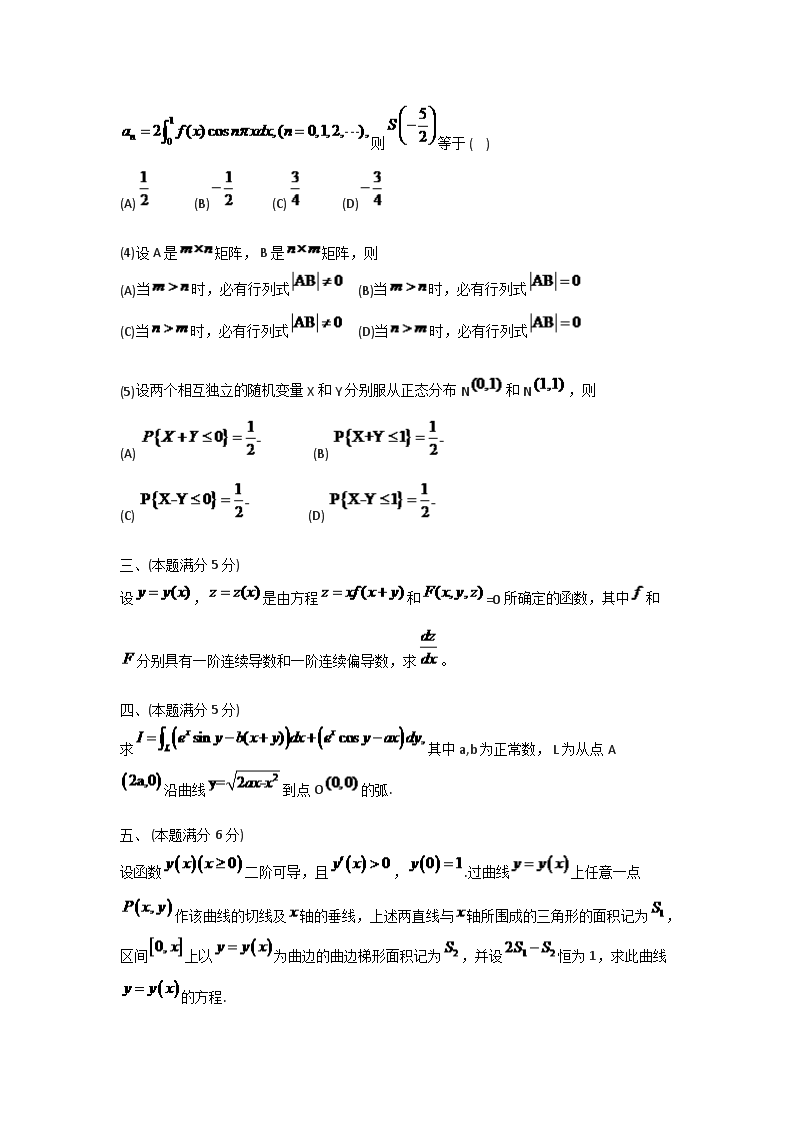 【文档预览】 无忧考网整理发布1999年考研数学一真题及答案(Word版),前五页预览如下: