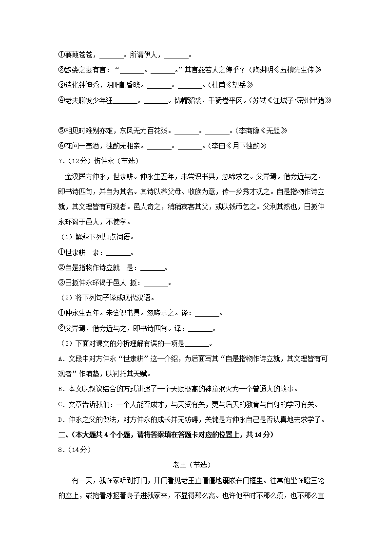 【文档名称】 2012年贵州黔东南州中考语文真题及答案(Word版).doc