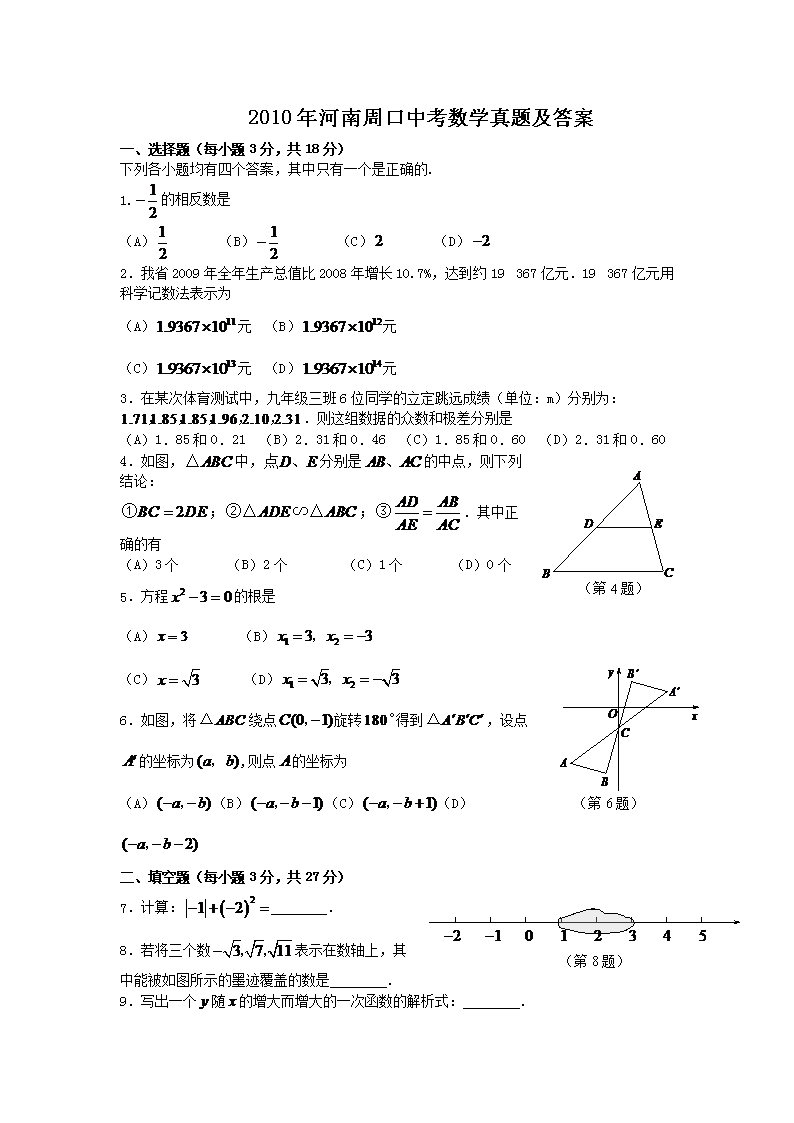 【文档名称】 2010年河南周口中考数学真题及答案(Word版).doc