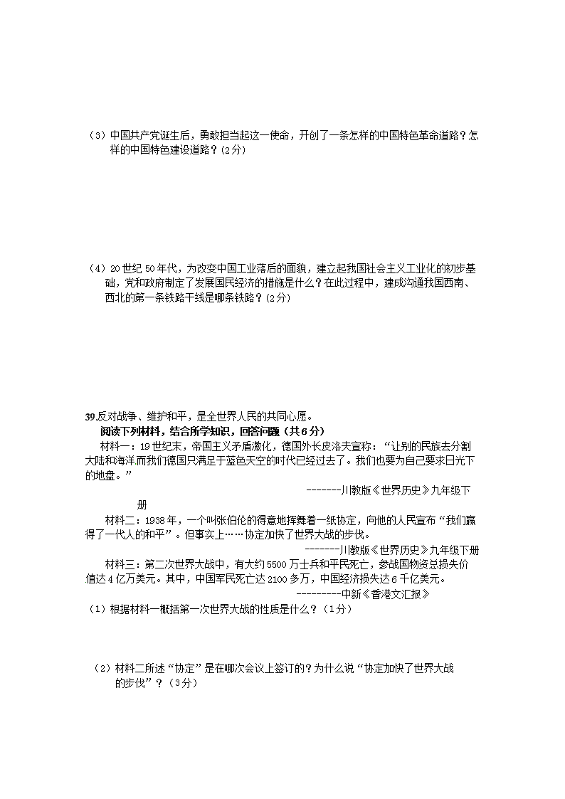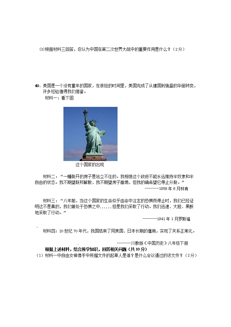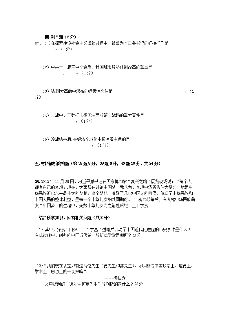 【文档名称】 2014年四川省达州市中考历史真题及答案(Word版).doc