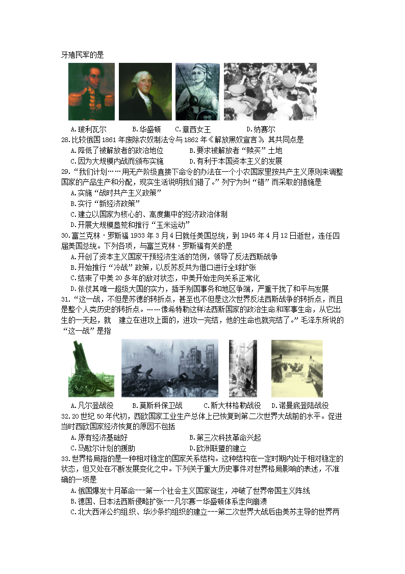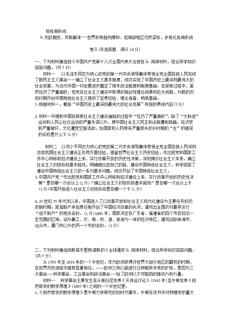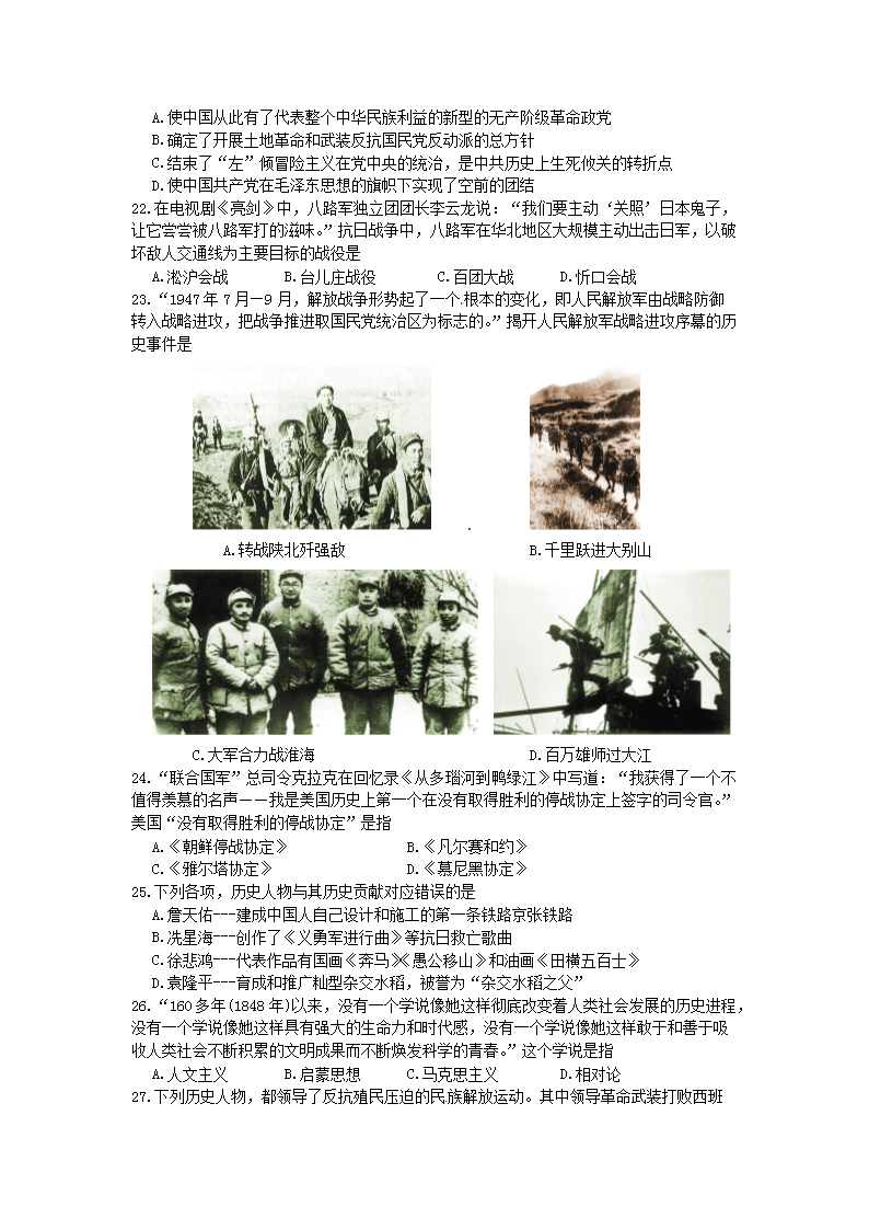 【文档名称】 2014年四川省广安市中考历史真题及答案(Word版).doc