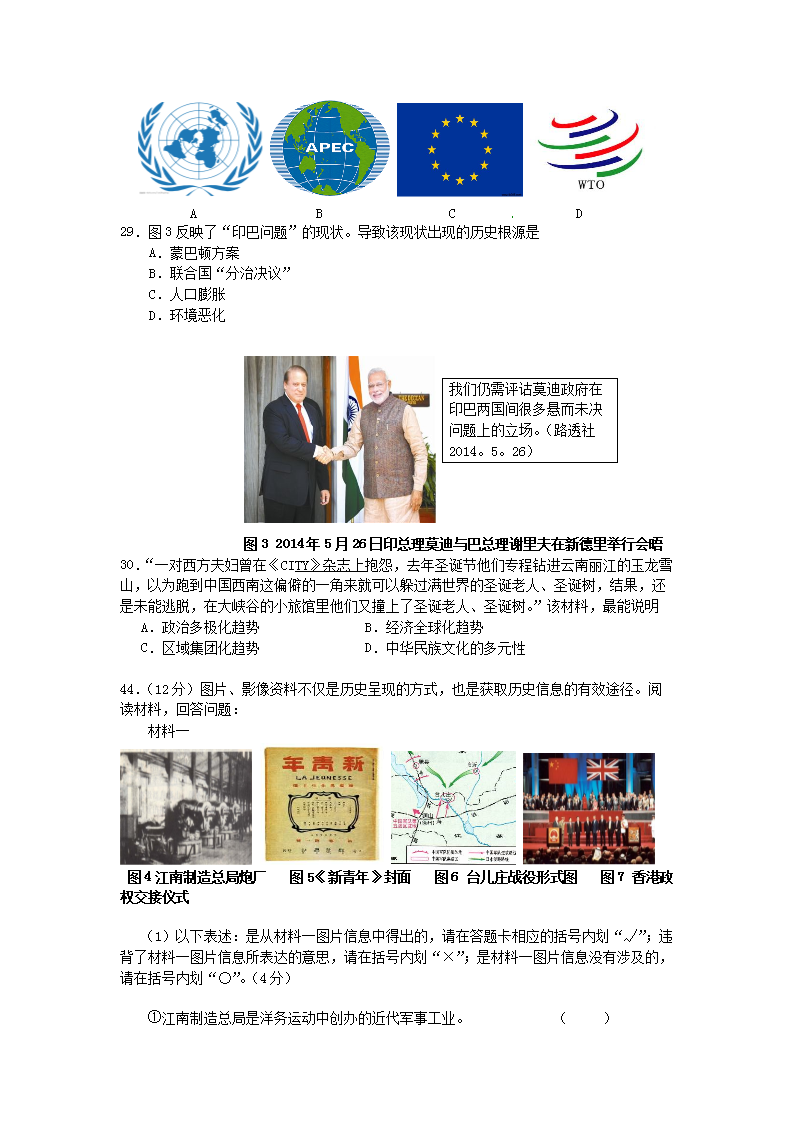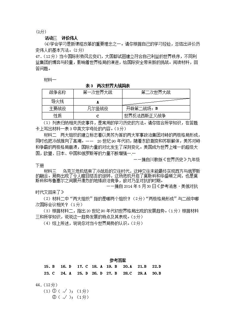 【文档名称】 2014年四川省乐山市中考历史真题及答案(Word版).doc