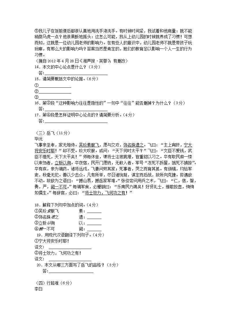 【文档名称】 2012年贵州遵义市中考语文真题及答案(Word版).doc