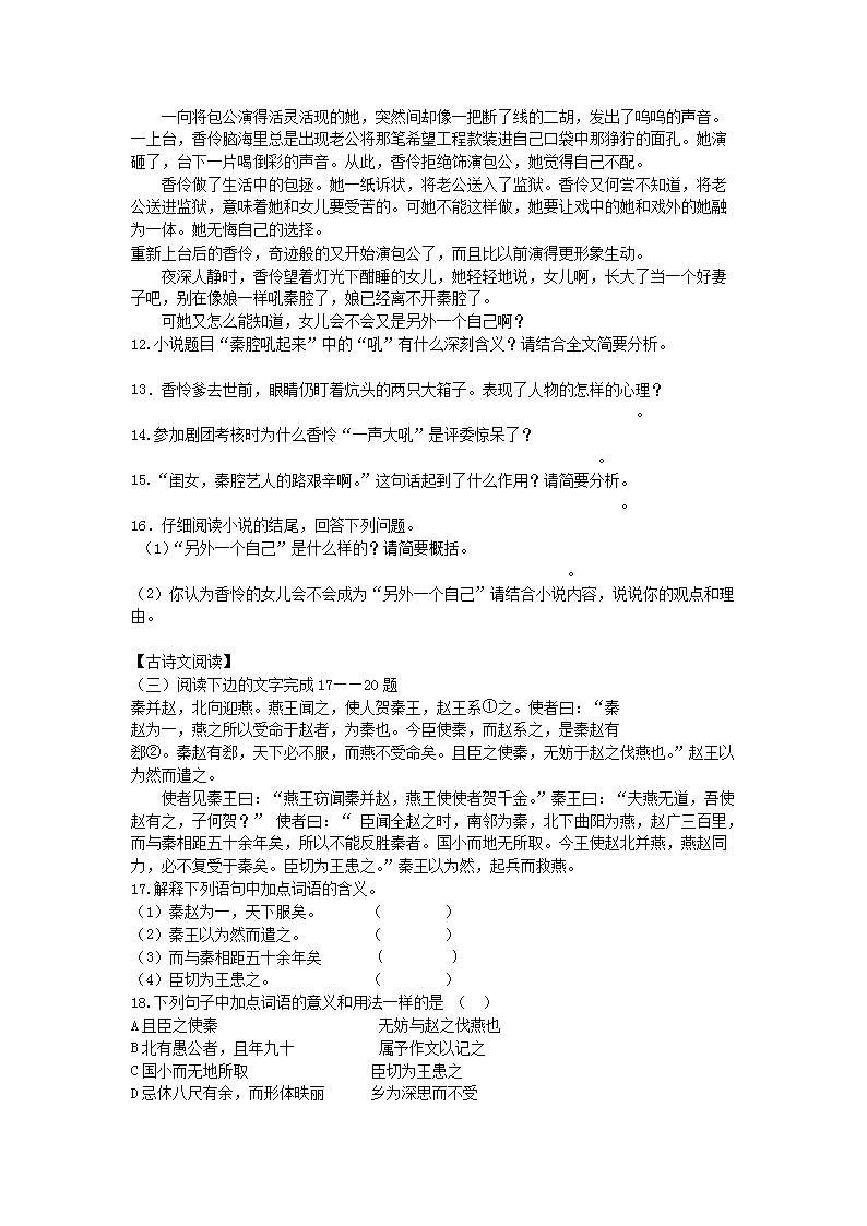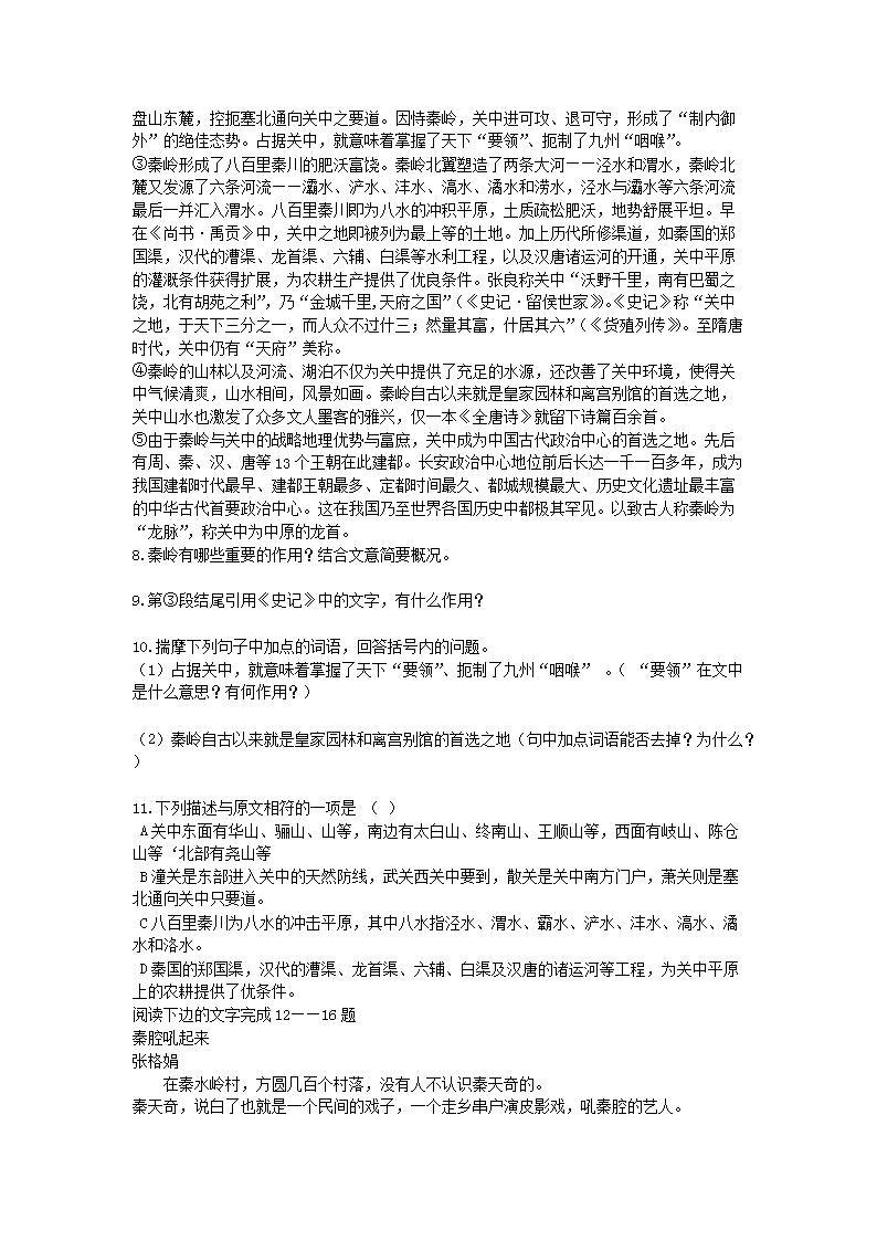 【文档预览】 无忧考网整理发布2010年陕西省汉中中考语文真题及答案(Word版),前五页预览如下: