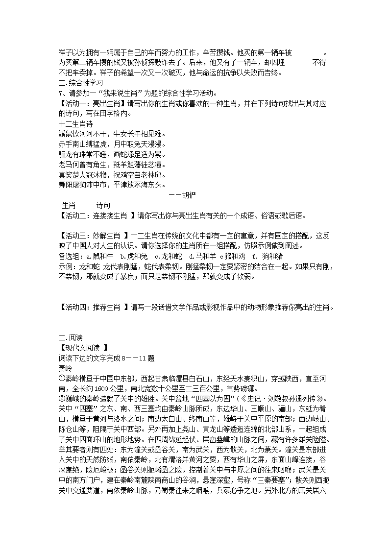 【文档名称】 2010年陕西省咸阳中考语文真题及答案(Word版).doc