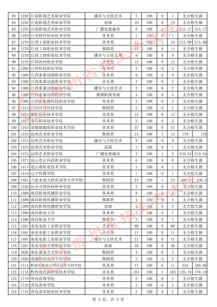 2021年8月7日贵州普通高校招生艺术类高职(专科)院校第二次补报志愿投档情况