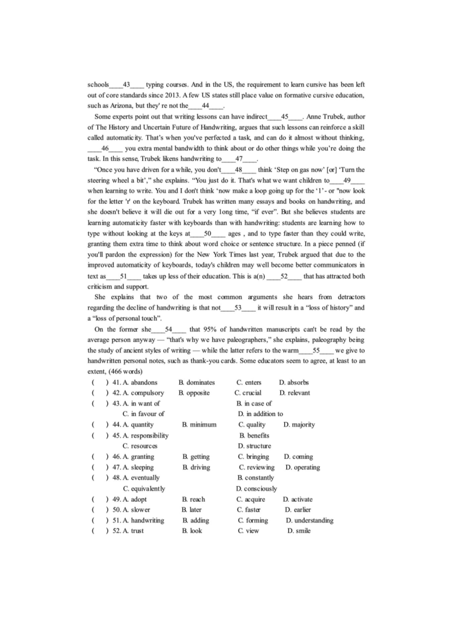 【文档名称】 2019年上海高考英语真题试题及答案(图片版).doc