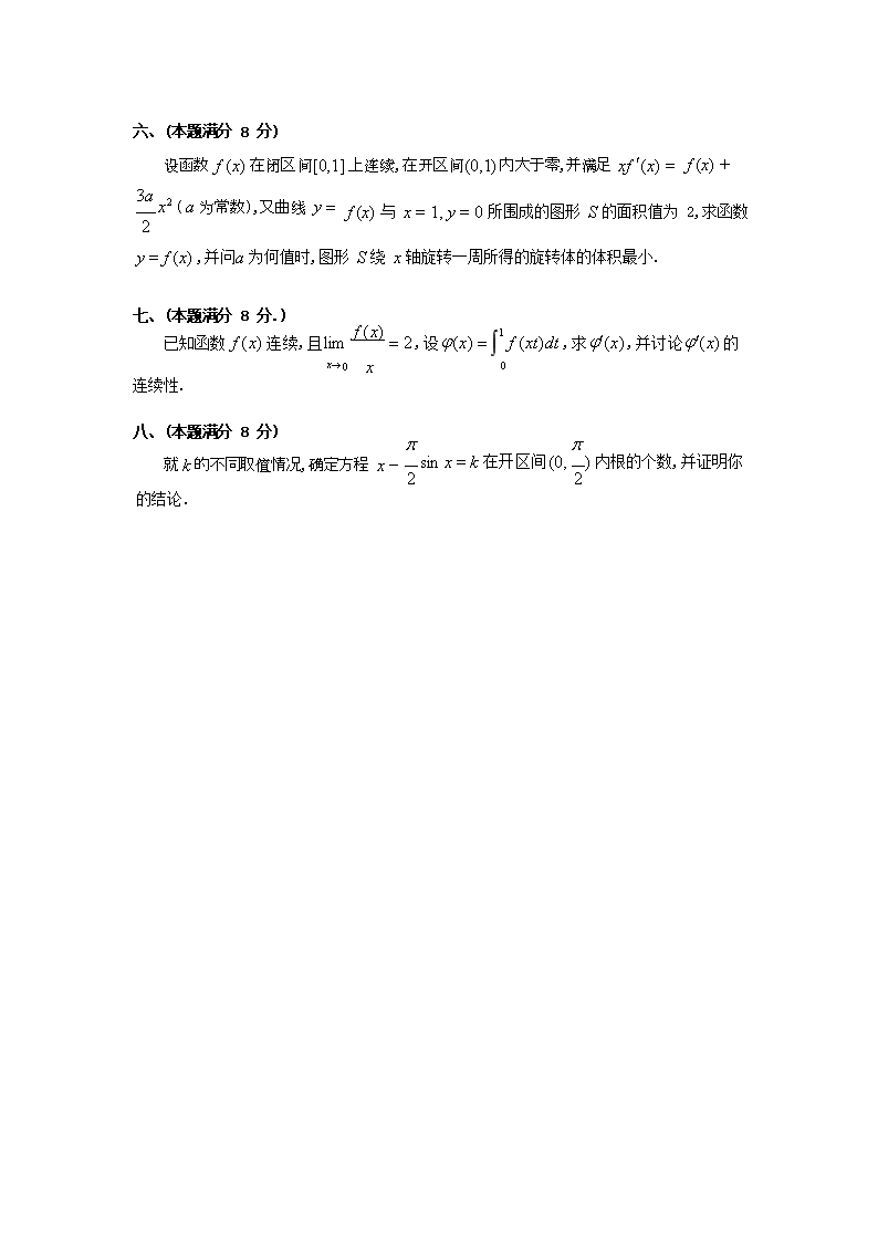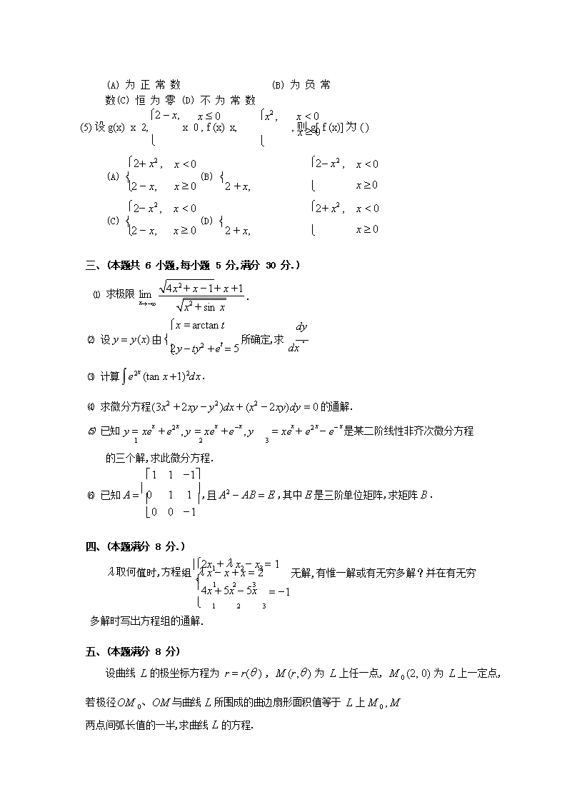 【文档预览】 无忧考网整理发布1997年考研数学二真题及答案(Word版),前五页预览如下: