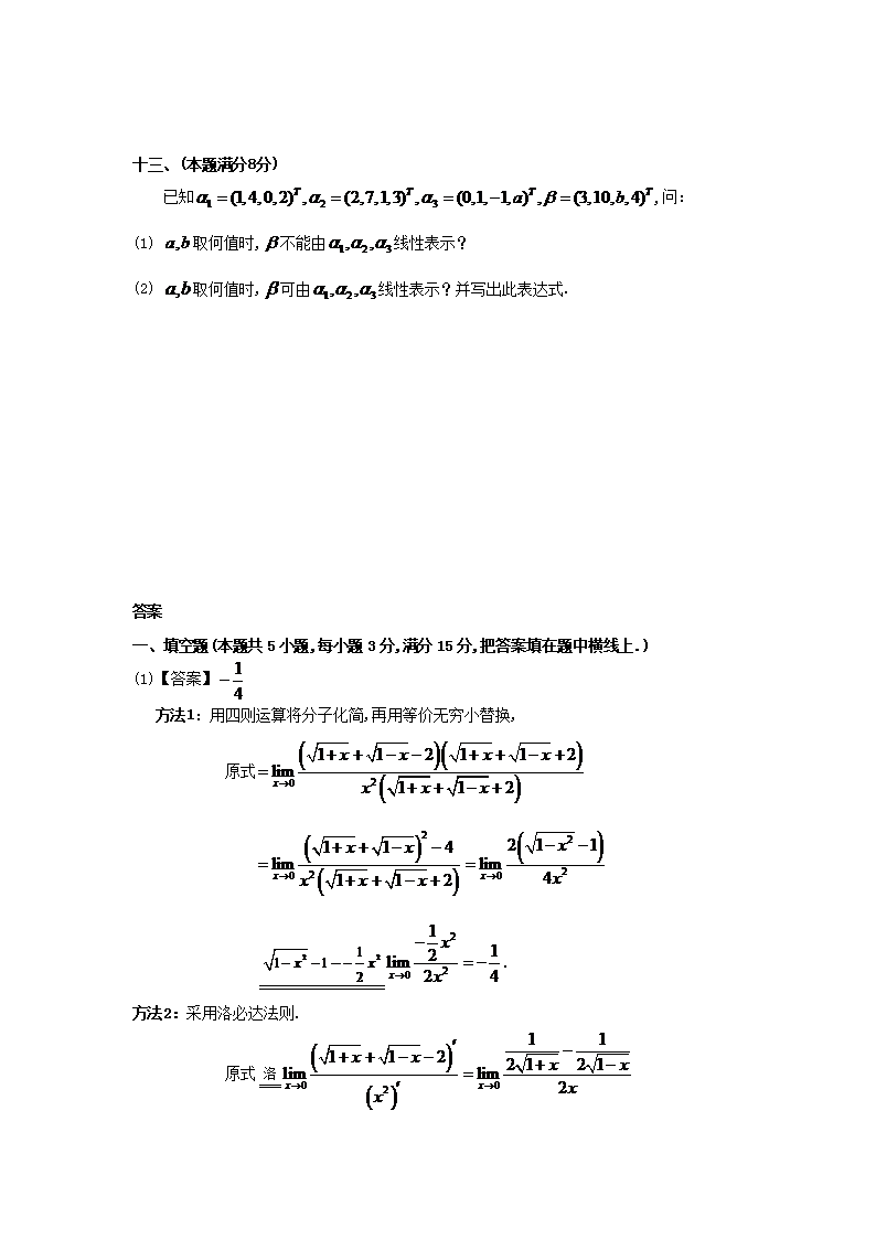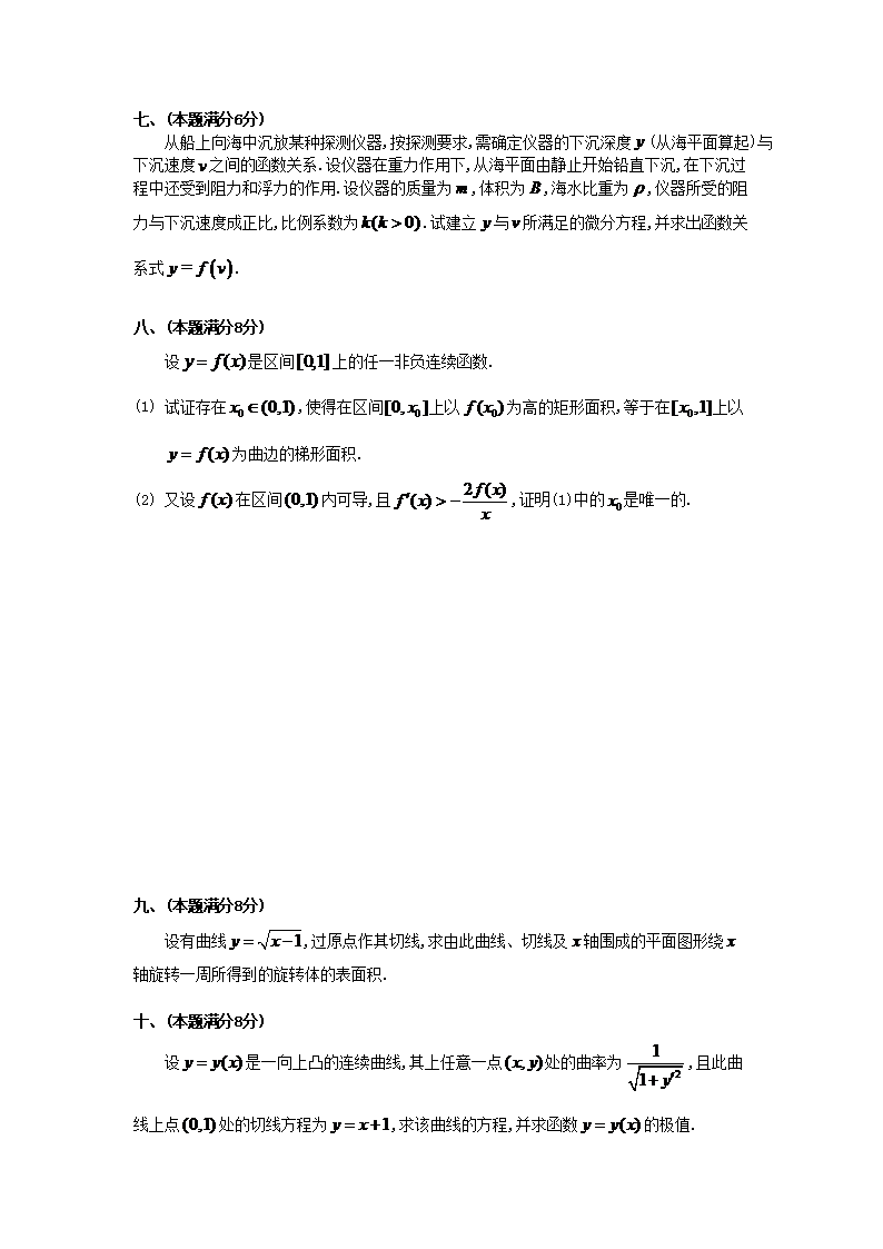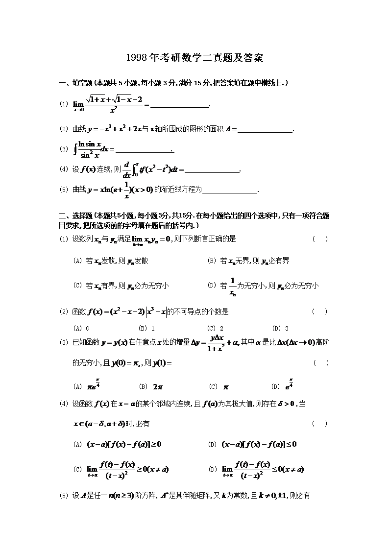 【文档名称】 1998年考研数学二真题及答案(Word版).doc