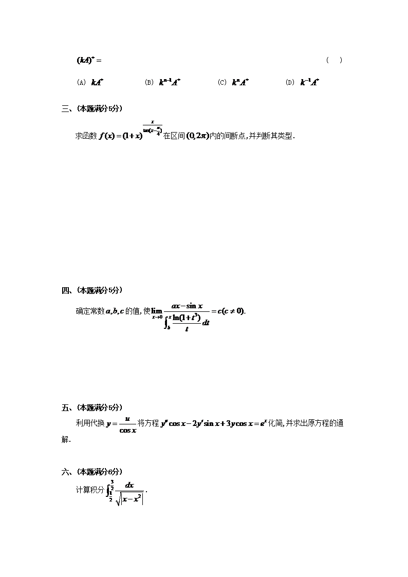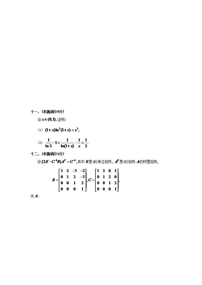 【文档预览】 无忧考网整理发布1998年考研数学二真题及答案(Word版),前五页预览如下: