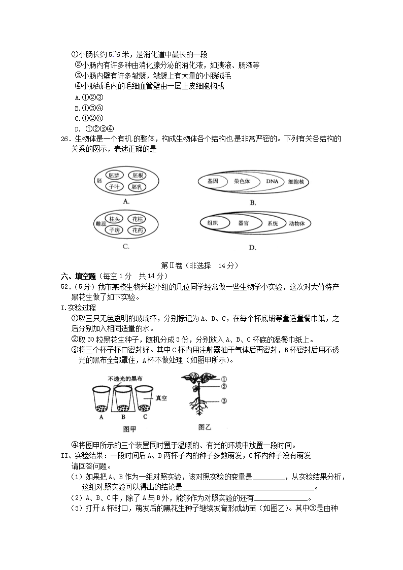 【文档名称】 2014年四川省达州市中考生物真题及答案(Word版).doc