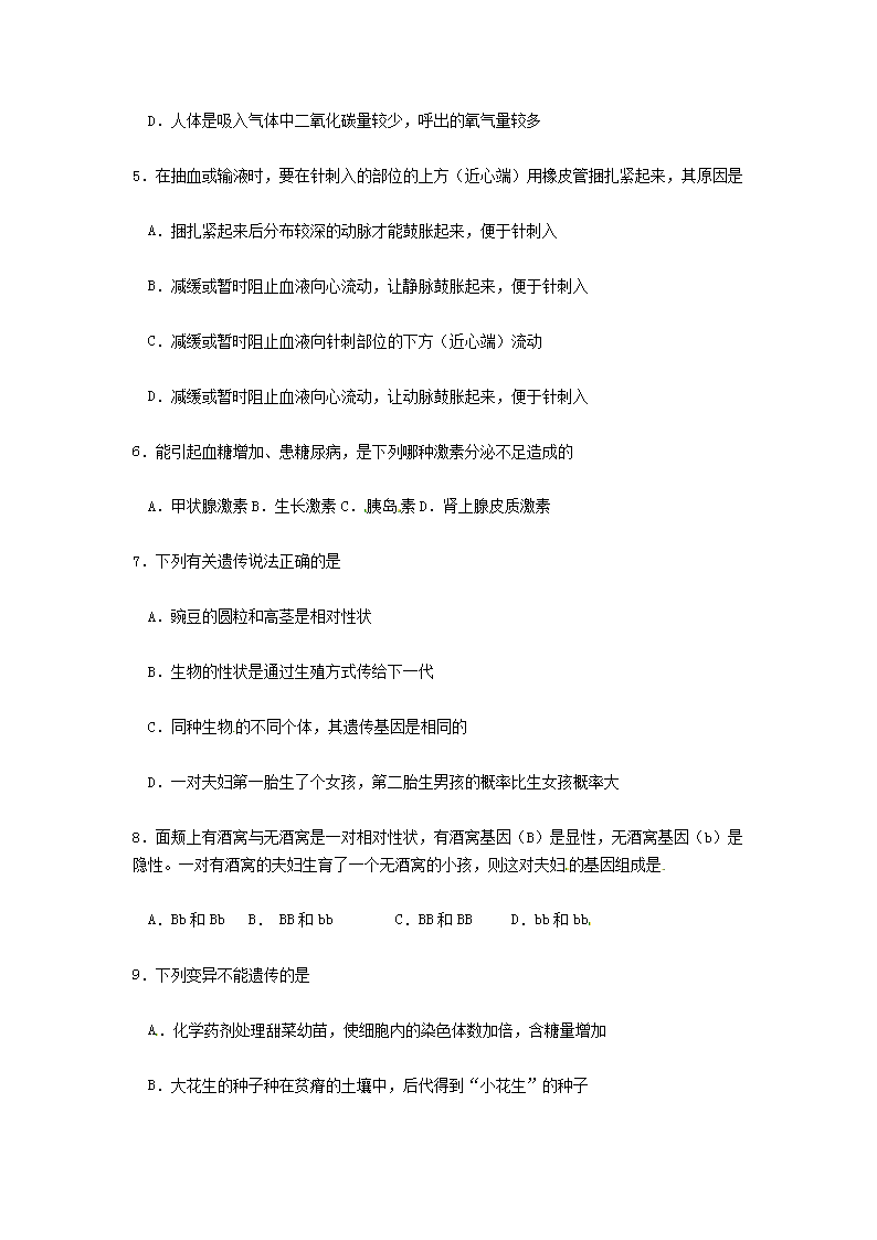 【文档名称】 2014年四川省德阳市中考生物真题及答案(Word版).doc