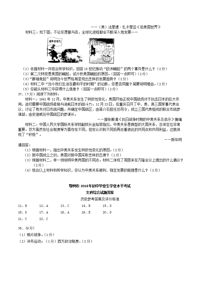 【文档名称】 2014年湖北省鄂州市中考历史真题及答案(Word版).doc