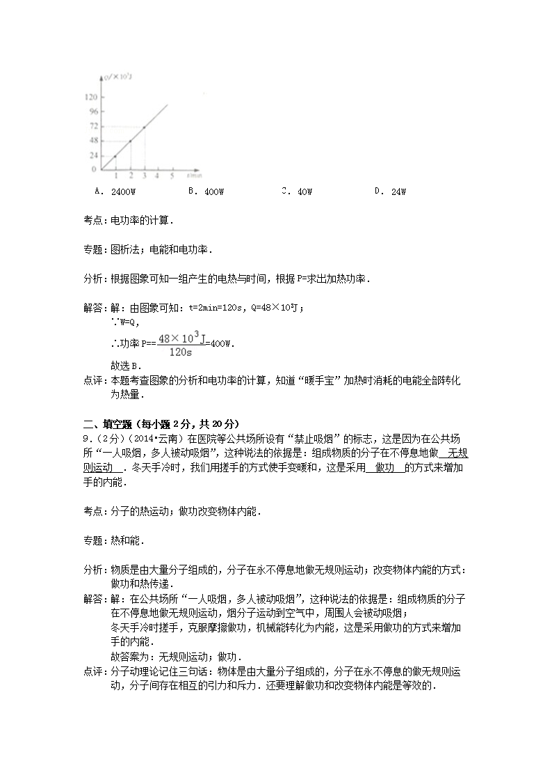 【文档名称】 2014年云南昭通中考物理真题及答案(Word版).doc