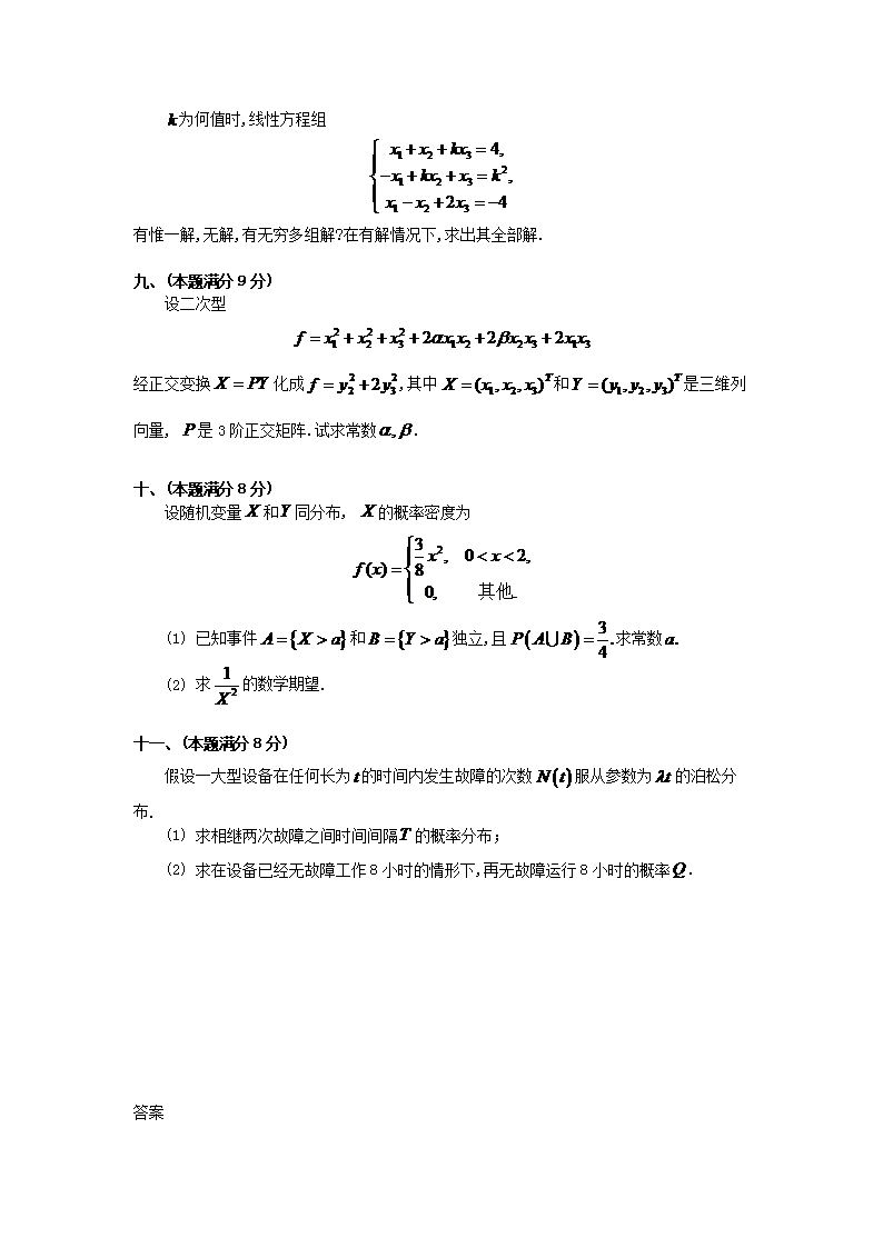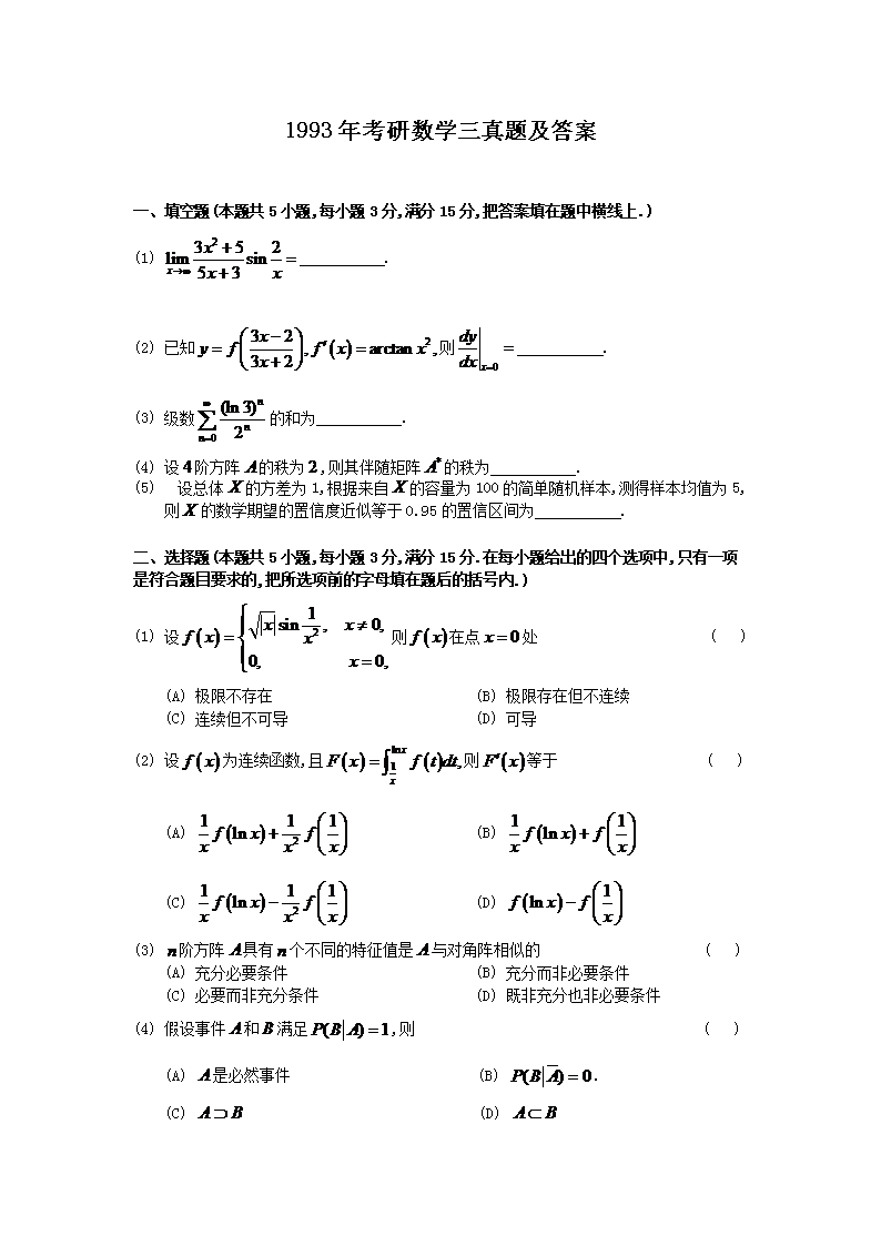 【文档名称】 1993年考研数学三真题及答案(Word版).doc