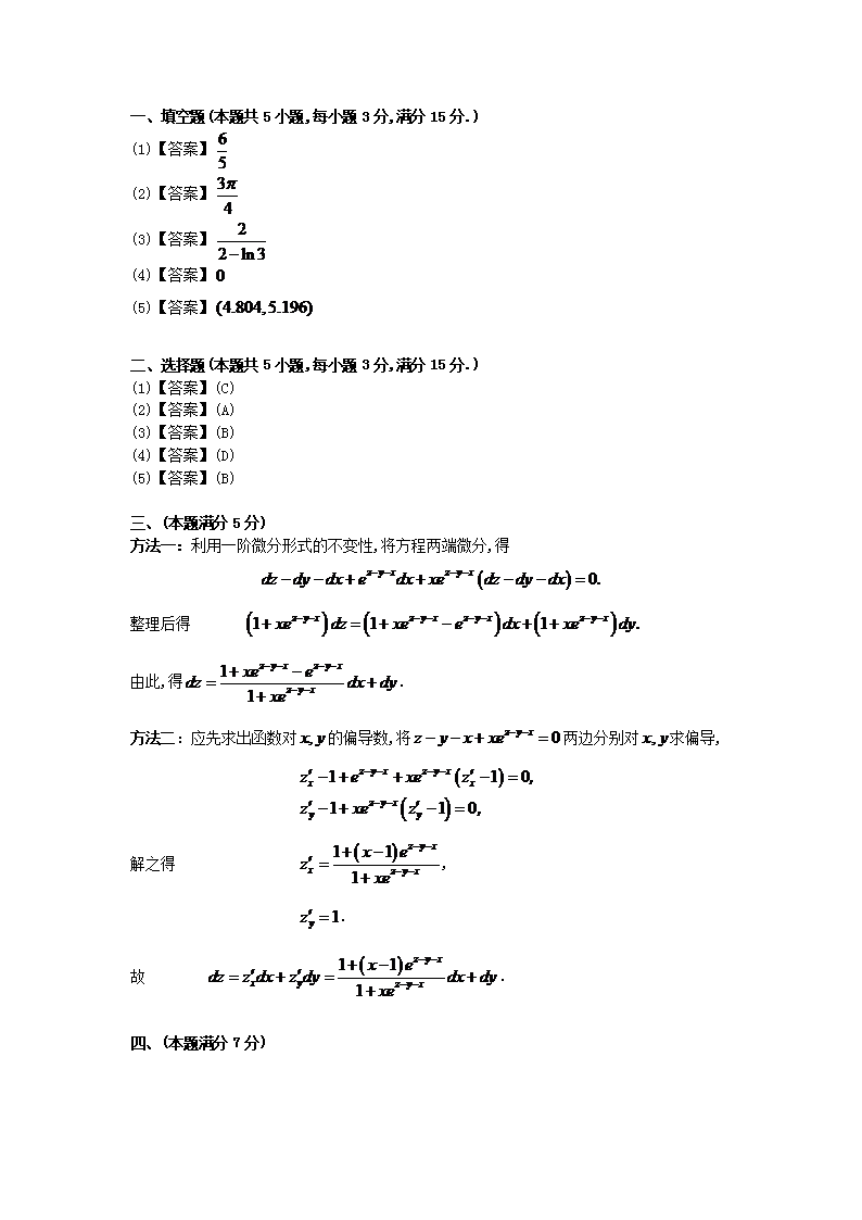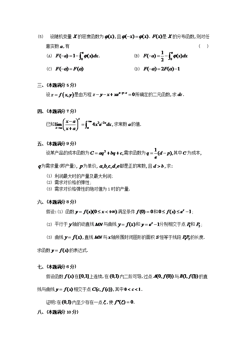 【文档预览】 无忧考网整理发布1993年考研数学三真题及答案(Word版),前五页预览如下: