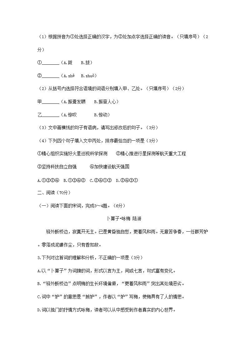 【文档名称】 2021年福建三明中考语文试题及答案(Word版).doc