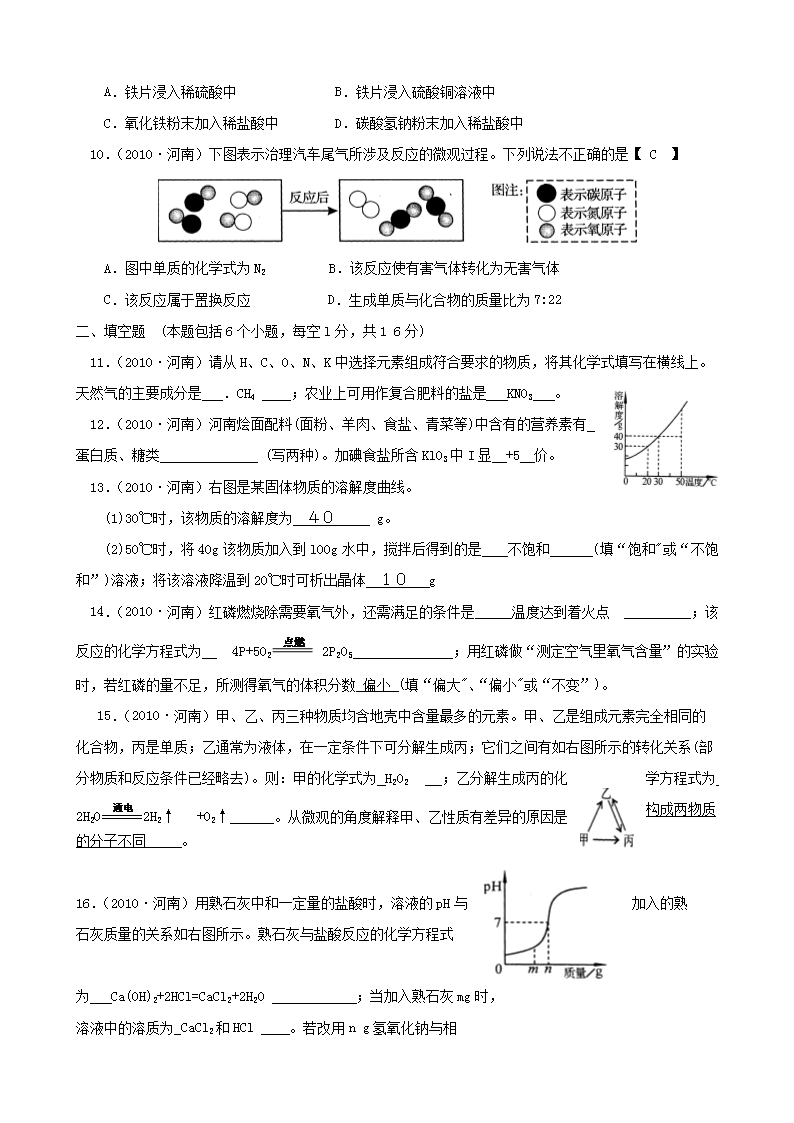 【文档名称】 2010年河南南阳中考化学真题及答案(Word版).doc