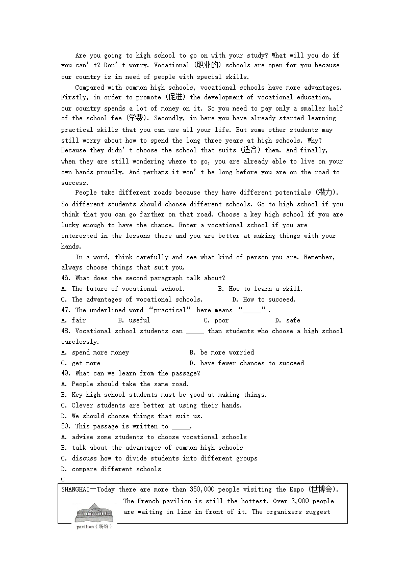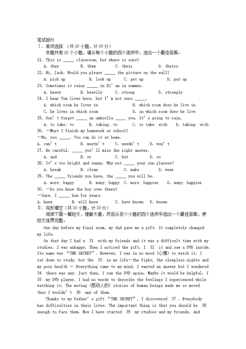 【文档预览】 无忧考网整理发布2010年陕西省延安中考英语真题及答案(Word版),前五页预览如下: