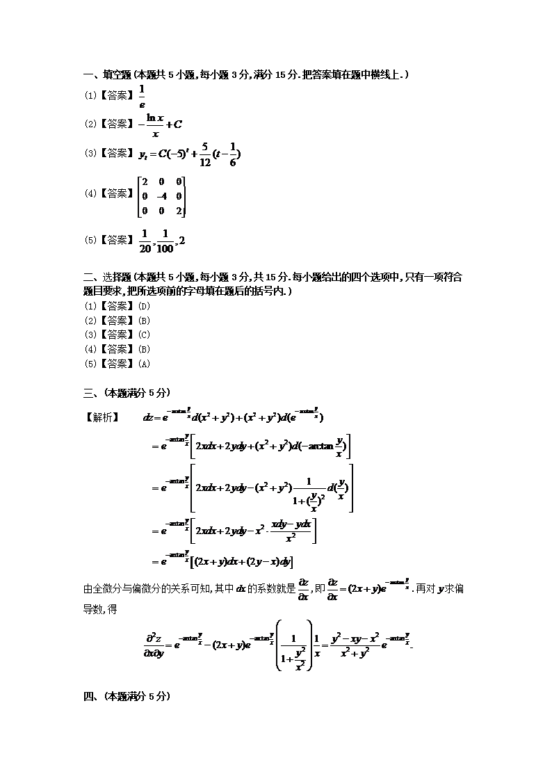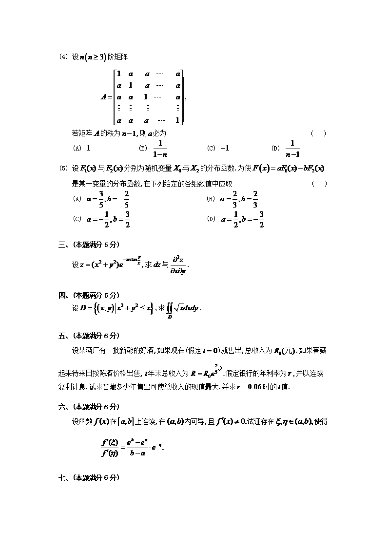 【文档预览】 无忧考网整理发布1998年考研数学三真题及答案(Word版),前五页预览如下: