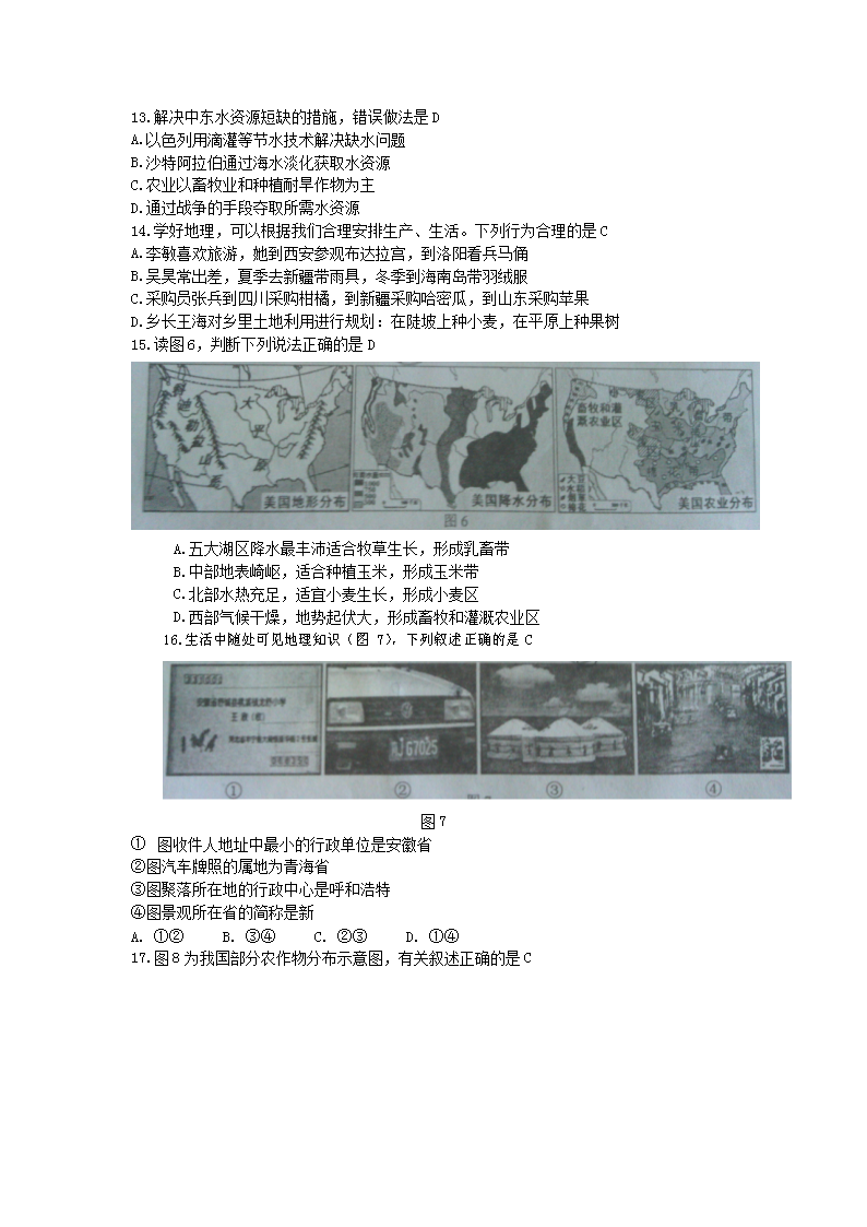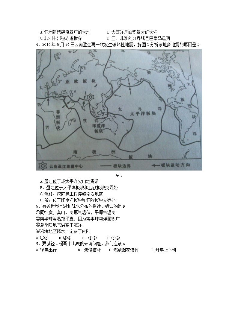 【文档名称】 2014年云南玉溪中考地理真题及答案(Word版).doc
