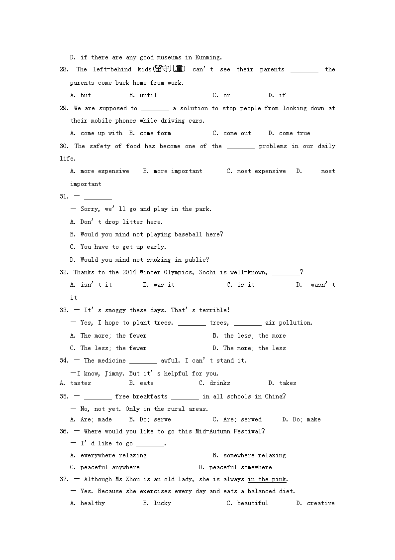 【文档名称】 2014年云南昆明中考英语真题及答案(Word版).doc