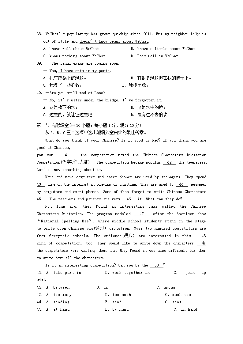【文档预览】 无忧考网整理发布2014年云南昆明中考英语真题及答案(Word版),前五页预览如下: