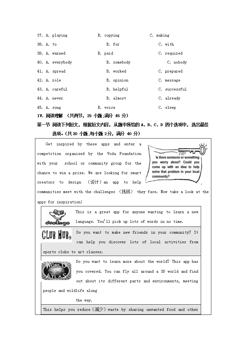 【文档名称】 2021年福建厦门中考英语试题及答案(Word版).doc