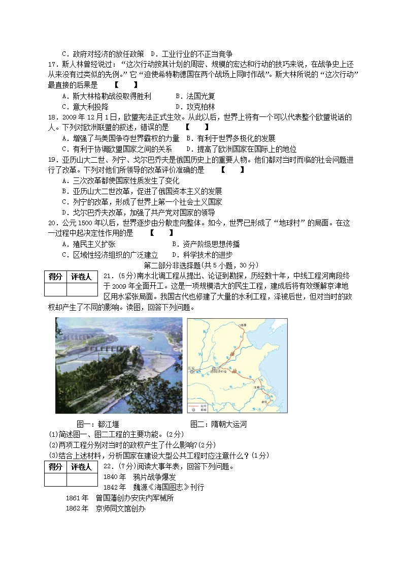 【文档名称】 2010年河南鹤壁中考历史真题及答案(Word版).doc