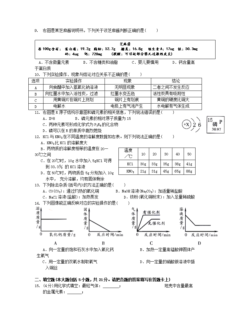 【文档名称】 2014广东省汕头市中考化学真题及答案(Word版).doc