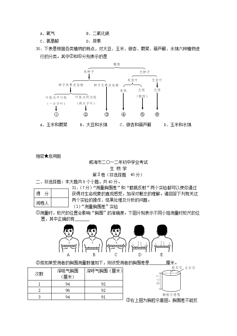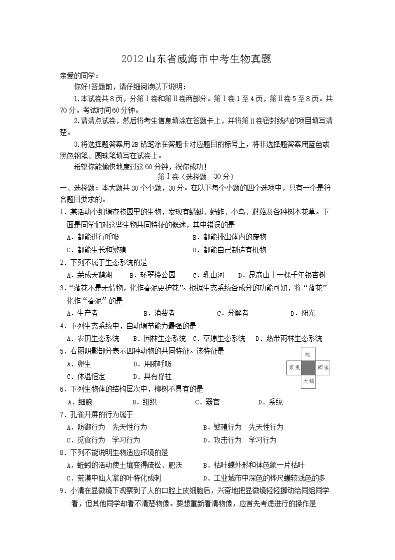 【文档名称】 2012山东省威海市中考生物真题(Word版).doc