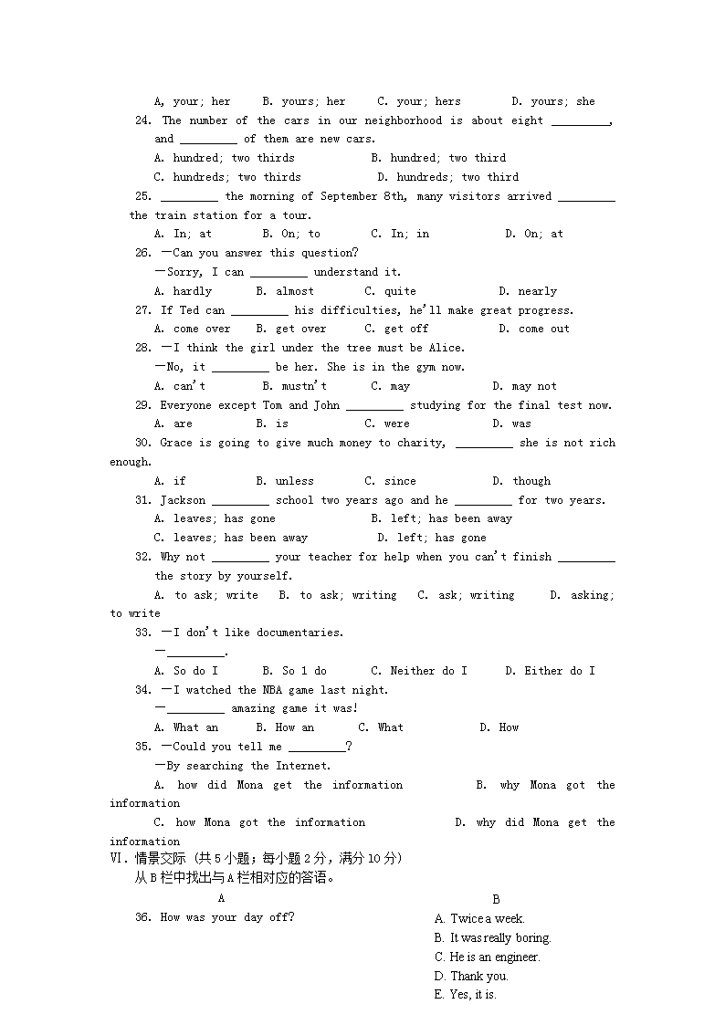 【文档名称】 2013年新疆乌鲁木齐中考英语真题及答案(Word版).doc