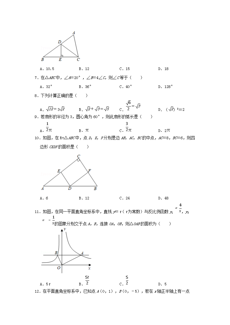 【文档名称】 2021年广西梧州中考数学真题及答案(Word版).doc