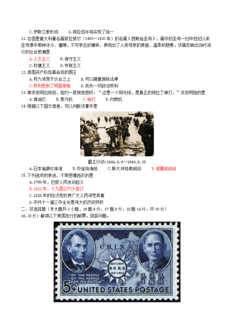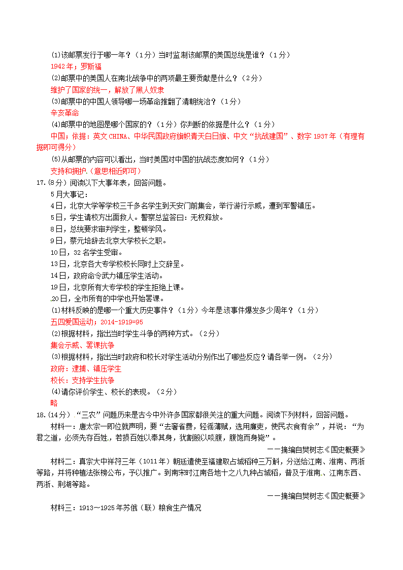 【文档名称】 2014年广西玉林市中考历史真题及答案(Word版).doc